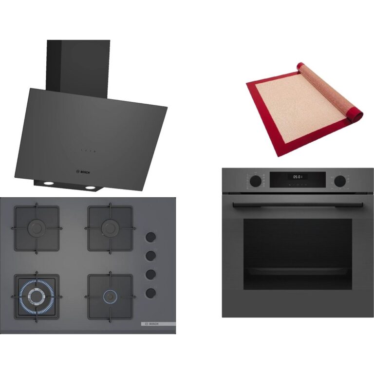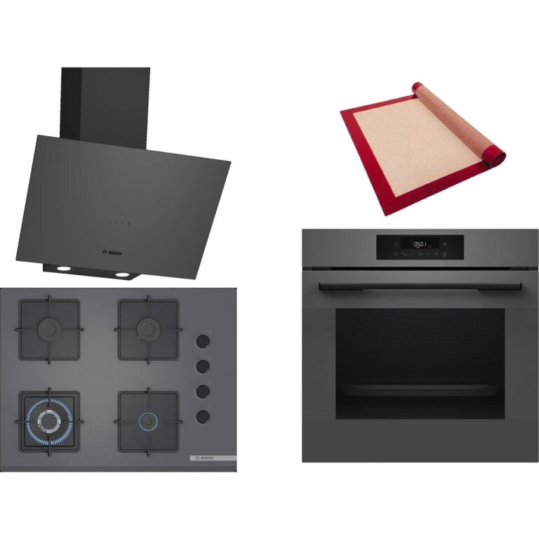 Bosch Gri 3 Lü Ankastre Set 357 ( HJG852YN0T – POH7C9P30O – DWK64PJ70T ) 67CM Wok Bek Ocak – 3D Fry Hava ile Kızartma – Pişirme Matı ile Birlikte