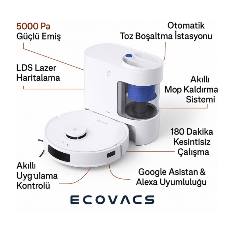 Ecovacs Deebot N20 Pro Plus Otomatik Boşaltım Istasyonlu Islak & Kuru Robot Süpürge 8000PA Titreşimli M