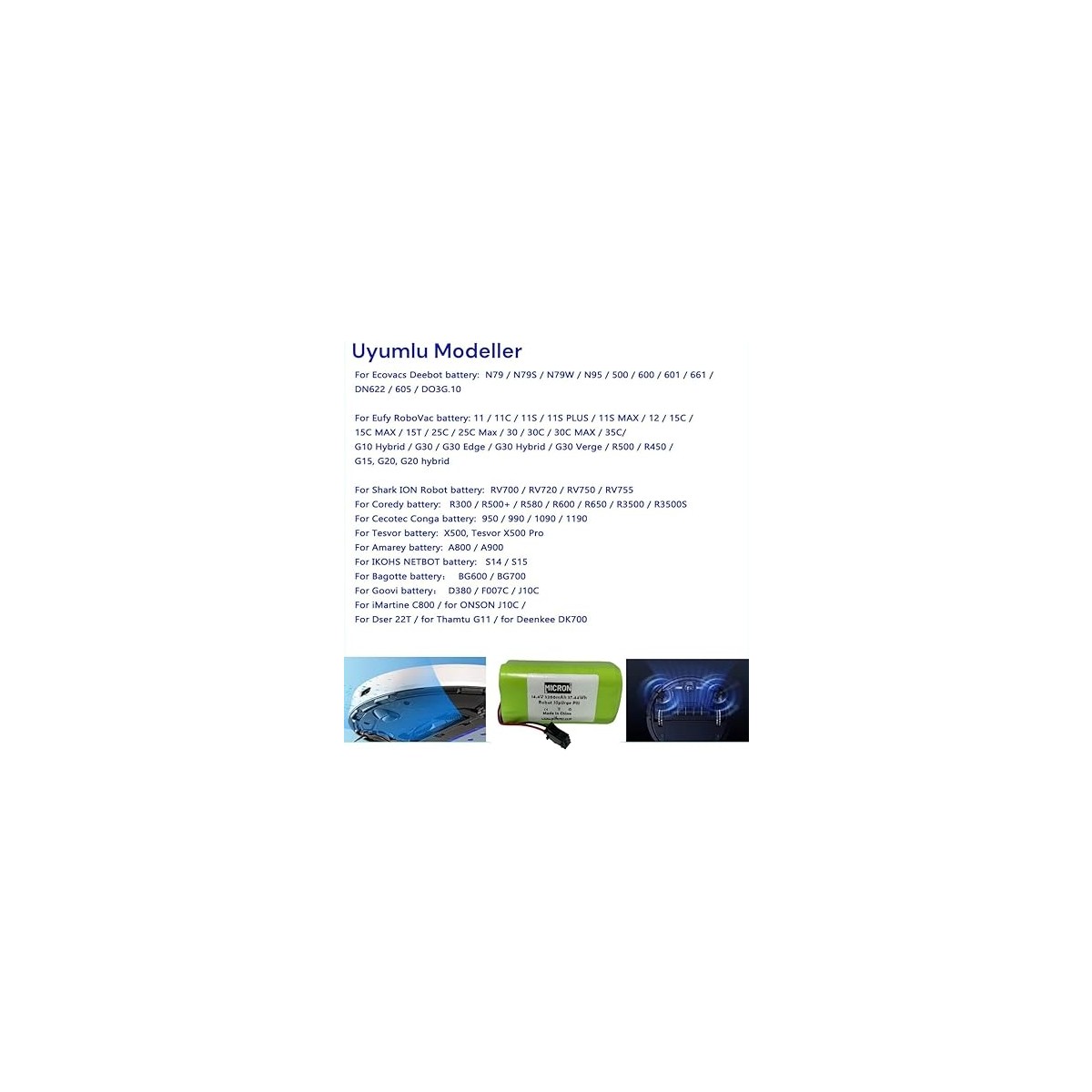 14.4V 3200MAH Robot Süpürgeler Için Uyumlu Pil (Batarya) Yüksek Kapasite Yüksek Performans, 1.5 Kata Kadar Uzun Kullanım