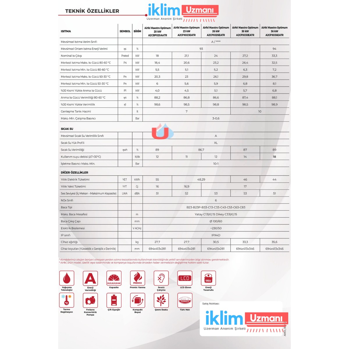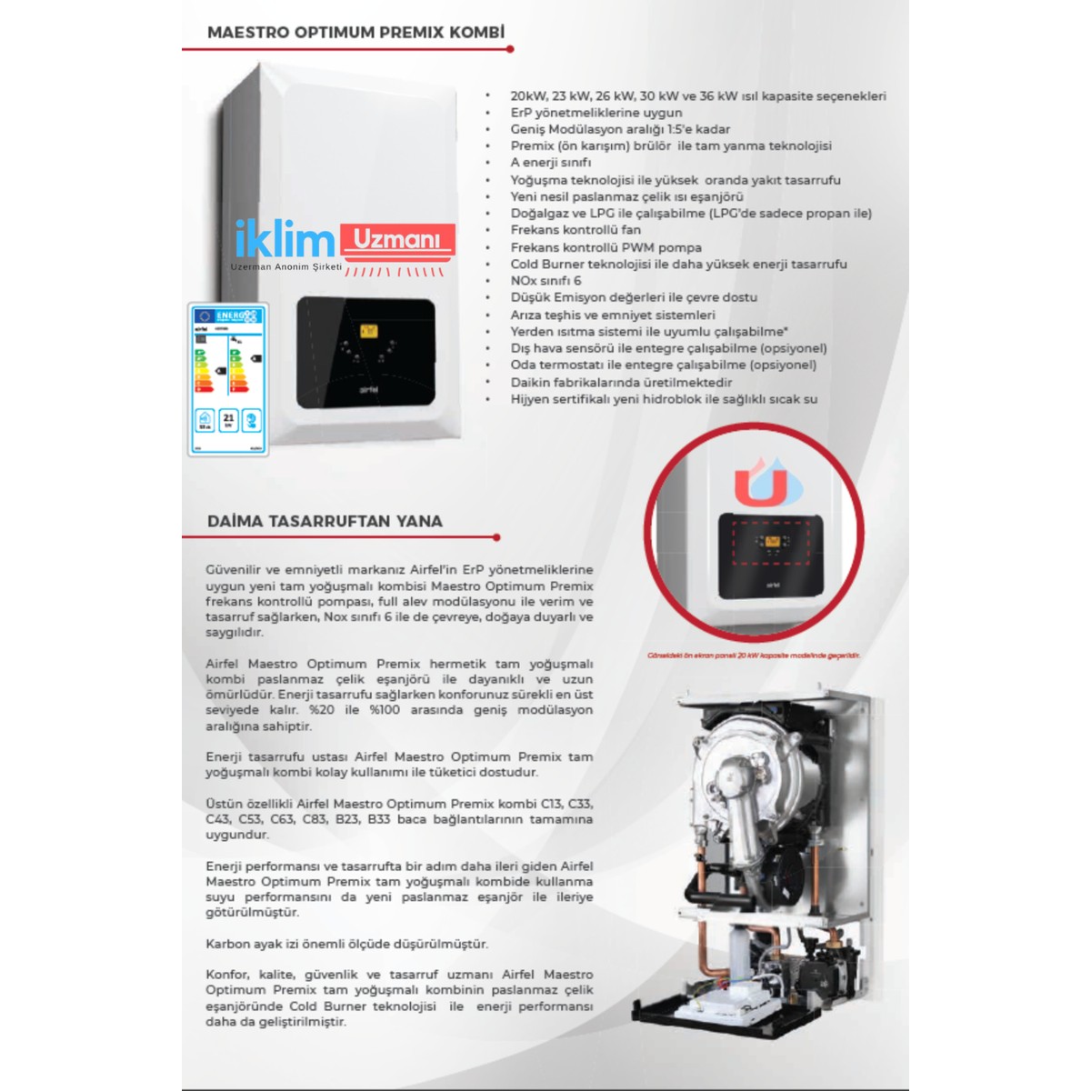 - Bu kombi ERP’li mi? Evet, Airfel Maestro Optimum 20 Kw modeli yeni nesil ErP (Enerji Uyumlu Ürün) pompalıdır.