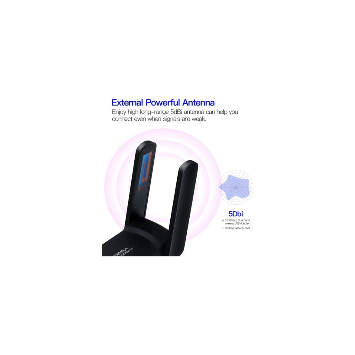 AC1300 Mbps Dual Band USB 3.0 Adaptör Kablosuz Wifi Alıcı LINUX WINDOWS VISTA MacOS DRIVERLERİ CD DE MEVCUTTUR. 1300Mbps Dual Band Uzun Menzilli Kablosuz WiFi Adaptörü USB Anteni Usb 3.0 Destekli Yüksek kaliteli malzemeden üretilmiştir, dayanıklı ve kullanımı pratiktir. * 1300M hız, 2.4ghz / 5.8ghz çift frekanslı, * USB3.0 arayüzü, kararlı ve hızlı iletim, daha kararlı alım, sürtünme önleyici ağ, kablosuz veri, çeşitli sistemleri destekler, güçlü uyumluluk, * WIFI, 2.4g ve 5G frekans bantlarının ağ sinyallerini aynı anda arayabilir, isteğe göre geçiş yapabilir ve iletim hızı hızla artar. Özellikler: * Arayüz: USB 3.0 * Anten: harici 2dBi anten * İletim mesafesi: iç mekan MAX: 100m (ortama bağlı olarak, engelsiz) * Çalışma frekansı: 2.412-2484ghz / 5.15-5.825ghz (ulusal bölgeye göre) *Iletim gücü: 802.11 b (CCK) 11 MBPS: 18 + / – 1 DBM 802.11 g (OFDM) 54 MBPS: 15 + / – 1 DBM 802.11 n (OFDM) 54 MBPS: 15 + / – 1 DBM 802.11ac (AC80) McS9: 12 + / -2dbm * EVM girişi: 11 11 MBPS b: <15 db 11 g 54 MBPS: <- 27 db 11ac MCS9: <-30db * Hassasiyet alma: B: 802.11-76 + / – 1 DBM; G: 802.11-65 DBM + / – 1 802.11 n (HT20), – 70 + / – 1 DBM; 802.11 n (HT40), – 65 DBM + / – 1 AC80 – MCS9: 55 + / – 1 DBM * Kablosuz iletim hızı: 11b: Maks 11Mbps, 11g: Maks 54Mbps, 11n: Maks 300Mbps, AC: Maks 867Mbps * İşletim sistemi: Windows XP / Vista / 7/8/10, Linx; Mac * Kablosuz desteği: WPA / WPA2 / WEP / 802.1x / WMM Paket içeriği: 1 * USB Wi-Fi Adaptörü