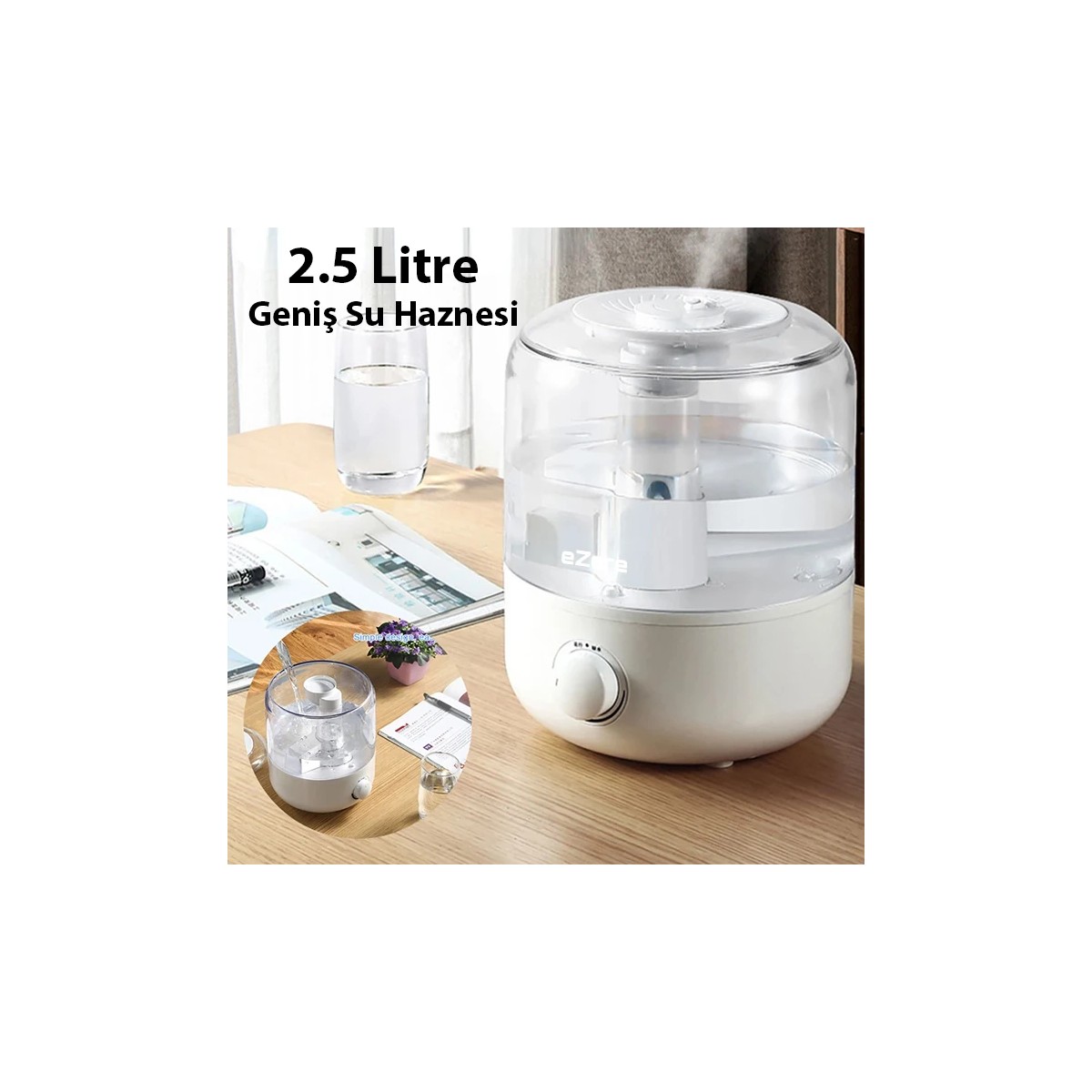 EZERE Yatak Odası için Üstten Doldurmalı 2,5 L Büyük Su Tankı,Otomatik Kapanma, Sessiz Soğuk Sisli Nemlendirici