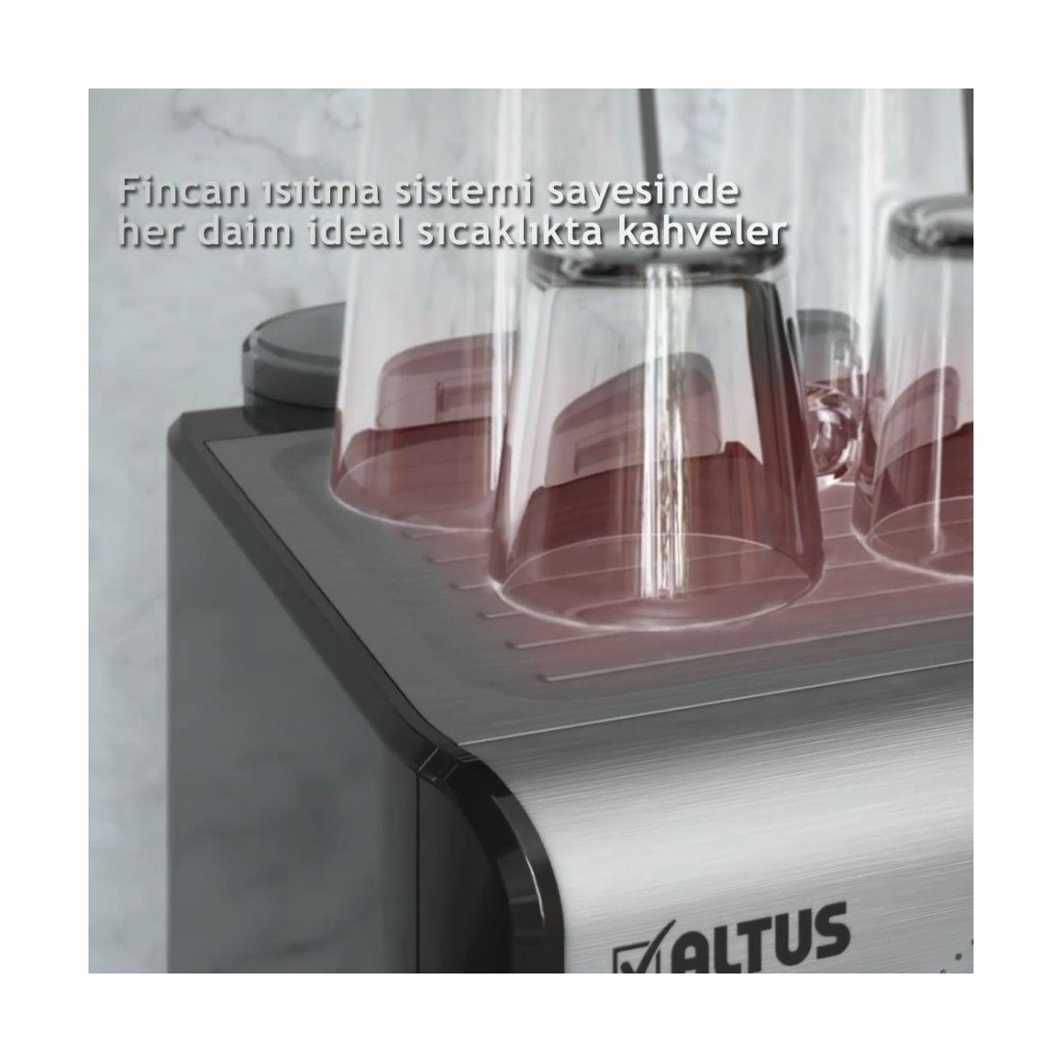 Kusursuz detaylar, güçlü teknik donanım ve kullanıcı dostu tasarımıyla Altus, sadece kahve yapmakla kalmaz; yaşam alanlarınıza değer katar.