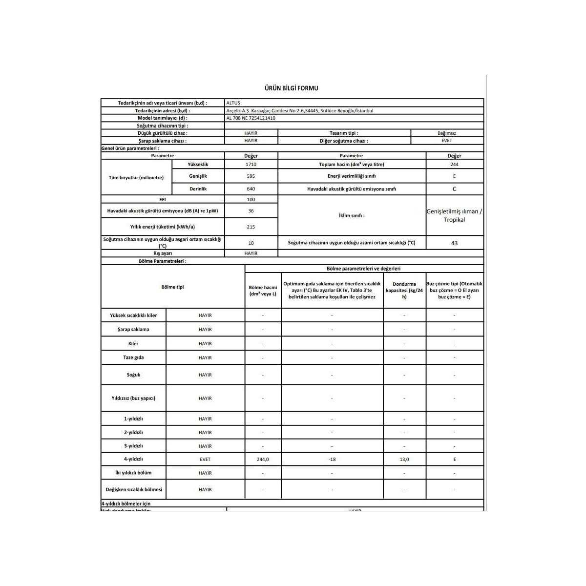 “Altus AL708 Ne E Enerji Yeni 7 Çekmeceli Statik Derindondurucu” için yorum yapan ilk kişi siz olun Yanıtı iptal et