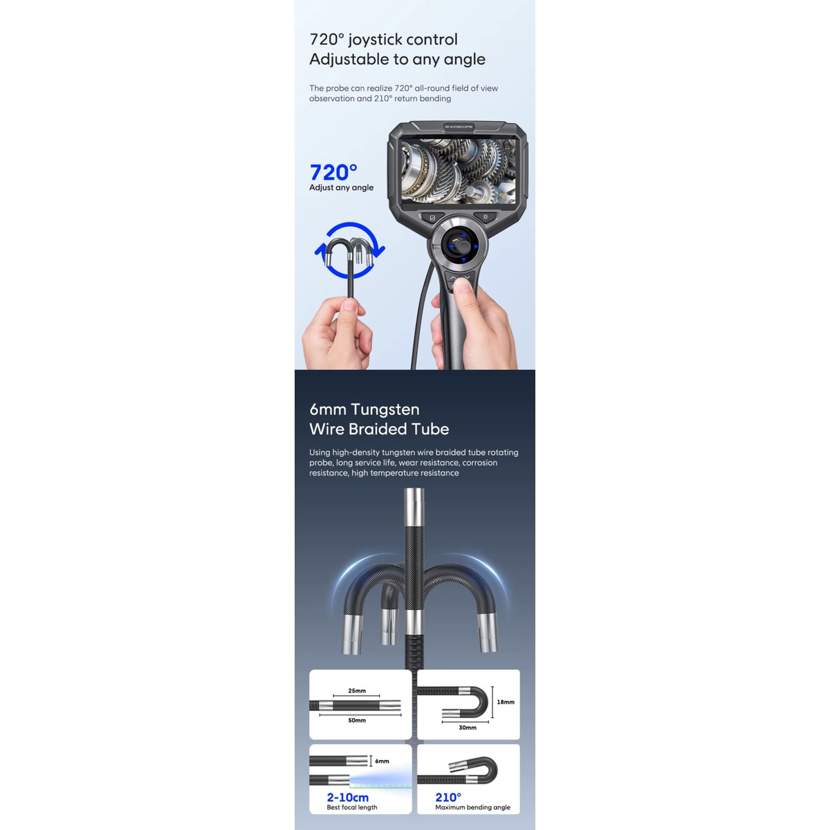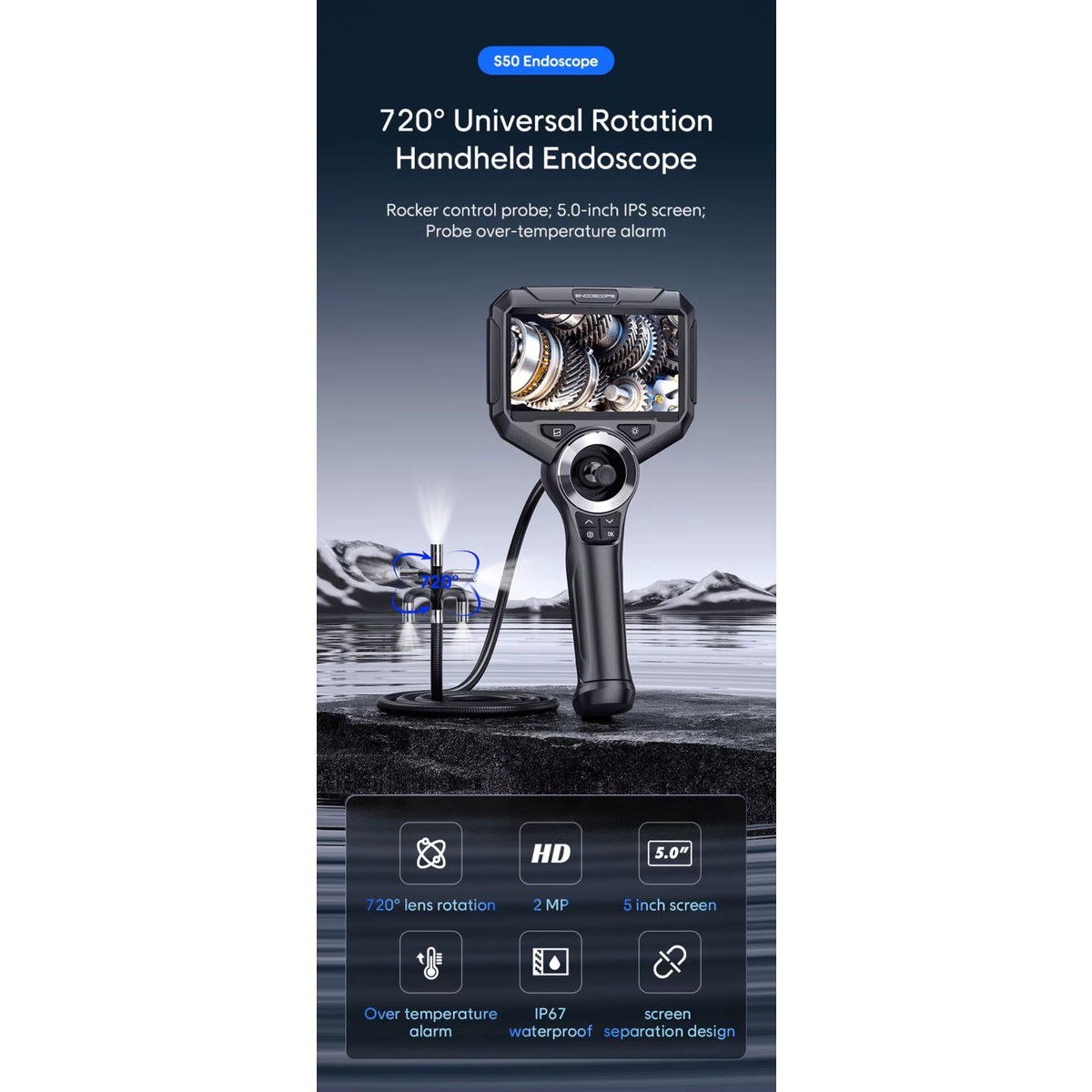 Anesok S50 720° Oynar Başlı 6mm Tek Lens Su Geçirmez 1 metre Endüstriyel Endoskop Kamera