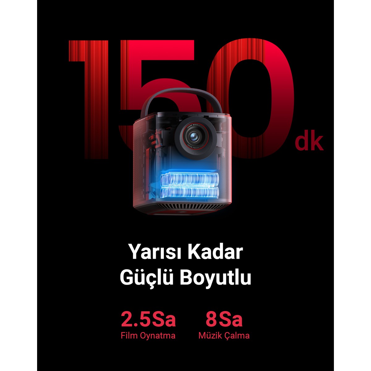 Anker Nebula Mars 3 Air Akıllı Taşınabilir Projeksiyon Cihazı – Netflix Lisanslı – 400 ANSI-Lumen – Native 1080P – Dolby Digital Ses – 150 inç Görüntü – (Anker Türkiye Garantili)