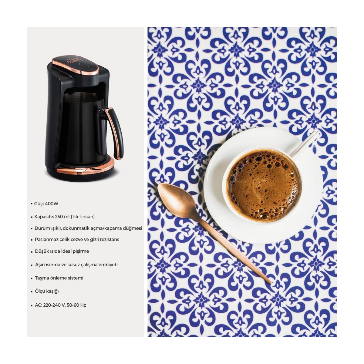 Ergonomik Tasarım: Çift Ağızlı Cezve, Sağ Ya Da Sol Elle Rahatça Kullanılabilmesi İçin Tasarlanmıştır. Gizli Rezistansıyla Kompakt Bir Yapıya Sahiptir. Dokunmatik Başlatma Düğmesi Üzerindeki Durum Işığı, Kahve Makinesinin Demlemeye Hazır Olduğunu Veya Demlenmenin Tamamlandığını Bildirir.&Nbspİki Yıl Garantisi Vardır.
