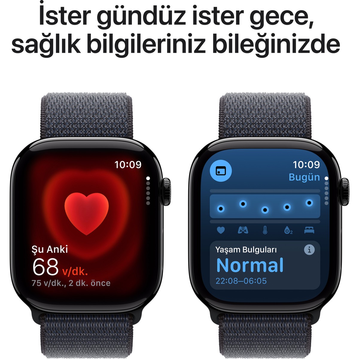 Apple Watch Series 10 [GPS + Cellular 42 mm] [Renk] Kasa Akıllı Saat ve [Renk] [kordon]. Fitness Takibi, EKG uygulaması, Hep Açık Retina Ekran, Suya Dayanıklı Tasarım Apple Watch Series 10 [GPS + Cellular 42 mm] [Renk] Kasa Akıllı Saat ve [Renk] [kordon]. Fitness Takibi, EKG Uygulaması, Hep Açık Retina Ekran, Karbon Nötr Apple Watch Series 10 [GPS 42 mm] [Renk] Kasa Akıllı Saat ve [Renk] [kordon]. Fitness Takibi, EKG uygulaması, Hep Açık Retina Ekran, Suya Dayanıklı Tasarım Apple Watch Series 10 [GPS 42 mm] [Renk] Kasa Akıllı Saat ve [Renk] [kordon]. Fitness Takibi, EKG Uygulaması, Hep Açık Retina Ekran, Karbon Nötr NEDEN APPLE WATCH SERIES 10 SATIN ALMALISINIZ? — Yüzde 30 daha fazla alan sunan daha büyük ekran.* Daha ince, daha hafif ve daha konforlu tasarım.* Paha biçilemez bilgiler sunan gelişmiş sağlık ve fitness özellikleri.* İhtiyacınız olduğunda yardım almanızı sağlayan güvenlik özellikleri.* Daha hızlı şarj özelliğiyle yaklaşık 30 dakikada yüzde 80 şarj.* GELİŞMİŞ SAĞLIK BİLGİLERİ — EKG çekin. Ne zaman isterseniz.* Kalp atış hızınız yüksek veya düşük olduğunda ya da kalp ritminiz düzensizleştiğinde bildirim alın.* Âdet döngünüzü anlayın ve geriye dönük yumurtlama zamanı tahminlerine erişin.* Yaşam Bulguları uygulamasıyla gece boyunca alınan kalp atış hızı ve solunum hızı gibi pek çok sağlık ölçümünüzü görün.* Yaşam Bulguları uygulamasıyla uyku durumunuzu takip edin ve gece boyunca alınan kalp atış hızı ve solunum hızı gibi pek çok sağlık ölçümünüzü GÜÇLÜ BİR FİTNESS KOÇU — Yaşam tarzınıza uyacak şekilde kişiselleştirilebilen Aktivite Halkalarıyla tüm hareketlerinizi ölçün. Antrenman uygulamasıyla çeşitli antrenmanlar için gelişmiş ölçümlere ulaşın. Antrenman yükü ile antrenmanlarınızın yoğunluğun takip edin. Ve sudaki aktiviteleriniz için derinlik ve su sıcaklığı sensörlerini kullanın. HÜCRESEL BAĞLANTI — Hücresel bir servis tarifesiyle, iPhone’unuz yanınızda olmasa bile mesaj gönderin, arama yapın ve online müzik dinleyin.* BAĞLANTIDA KALIN — Hareket halindeyken de mesaj gönderin, aramaları yanıtlayın, müzik ve podcast dinleyin, Siri’yi kullanın ve bildirim alın. Apple Watch Series 10 (GPS), iPhone’unuz veya Wi-Fi üzerinden bağlantıda kalmanızı sağlıyor. İNOVATİF GÜVENLİK ÖZELLİKLERİ — Ciddi bir araba kazası veya sert bir düşüş gibi durumlarda sizi acil servise bağlayan Düşme Algılama ve Trafik Kazası Algılama özellikleri. Acil SOS, sadece bir düğmeye basarak acil yardıma ulaşmanızı sağlıyor.* Durum Denetleme, varış noktanıza ulaştığınızda sevdiğiniz birine otomatik olarak bildirim gönderiyor.* İNANILMAZ DAYANIKLILIK — Çatlamaya karşı dayanıklı ve IP6X toza dayanıklılık derecesine sahip, 50 metre suya dayanıklı tasarım.* KARBON NÖTR — Apple Watch Series 10’un kasa malzemesini veya renk seçeneklerini karbon nötr olacak şekilde yapılandırabiliyorsunuz. Apple’ın çevre konusundaki kararlılığı hakkında daha fazla bilgi için apple.com/tr/2030 sayfasını ziyaret edin. TEK KELİMEYLE UYUMLU — Apple servisleriyle ve aygıtlarınızla kusursuz bir uyum içinde çalışıyor.* Mac’inizin kilidini otomatik olarak açabiliyorsunuz. Tam Konum Bulma özelliği, desteklenen iPhone modellerinde iPhone’unuzun yaklaşık uzaklığını ve bulunduğu yönü gösteriyor.* KOLAYCA KİŞİSELLEŞTİRİLEBİLİR — Farklı stiller, materyaller ve renklerle tasarlanan kayışlar ve tamamen kişiselleştirilebilir kadranlar sayesinde saatinizi ruh hâlinize uygun şekilde veya anlık olarak değiştirebiliyorsunuz. * YASAL AÇIKLAMALAR — Bunlar ana ürün özelliklerinin bir özetidir. Daha fazla bilgi edinmek için aşağıya göz atın. * YASAL AÇIKLAMALAR — Bunlar ana ürün özelliklerinin bir özetidir. Daha fazla bilgi edinmek için yukarıya göz atın.