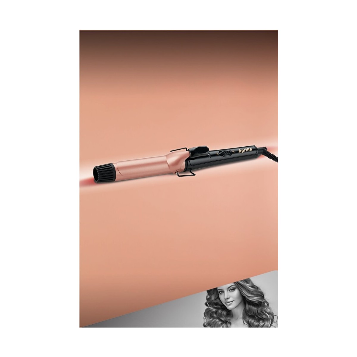 Aprilla saç şekillendirici maşa 32mm kıvırma maşası. ; Hızlı ısınma.Açma / kapama düğmesi. ; Maksimum sıcaklık 200°c. ; Ekstra uzun bar. ; Güç göstergeışığı. ; Asma halkalı ; 360° dönebilen güç kablosu. ;