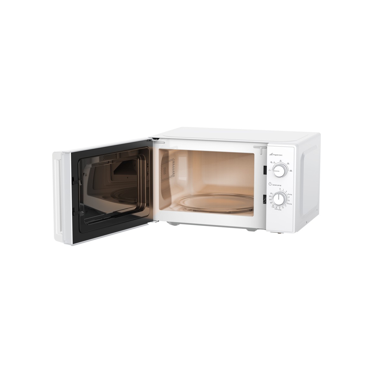 Mekanik kontrol paneli sayesinde kullanımı son derece basit olan bu mikrodalga, herkesin rahatlıkla kullanabileceği bir yapıya sahiptir. Kollu kapak açma mekanizması, hızlı ve zahmetsiz erişim sağlar. 700 watt gücündeki bu mikrodalga, yemeklerinizi kısa sürede ısıtırken enerji tasarrufu da sağlar.