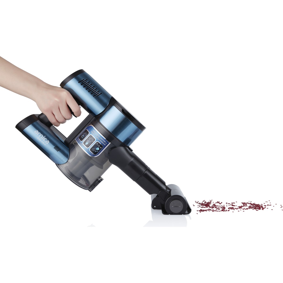 Ürünü bir teknololoji marketinde ilk olarak gördüm,aklımda hiç olmayan bir marka olmasına rağmen çok beğendim.bir çok aparatı mevcut ve çekim gücü çok satılan bilindik markalı süpürgelerden daha iyi.İnternette dahi orijinal yedek parçaları çok rahat bulunuyor.81 ilde servisi var.ürün teslim edildiği gün şarj ettim ve 130 m2 evimi süpürgeyi hiç kapatmadan eco modunda süpürdüm (52 dakika) ve şarjı tam yetti.armica solaranın 2 rengi mevcut.gri renk olanı daha pahalı,mavi renk olanı daha ucuz.bunuda çok araştırdım,arnica müşteri hizmetlerinede sordum.gri ve mavi renk cihazlar birbirinin aynısı.alacak olanlara kesinlikle tavsiye ederim.