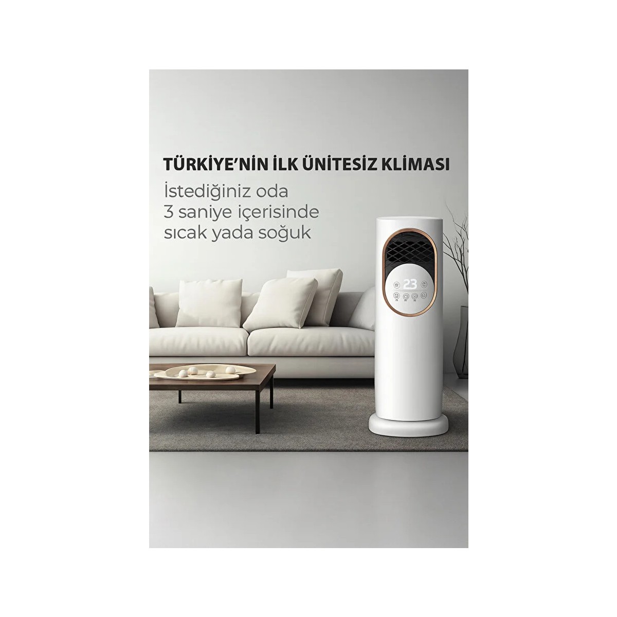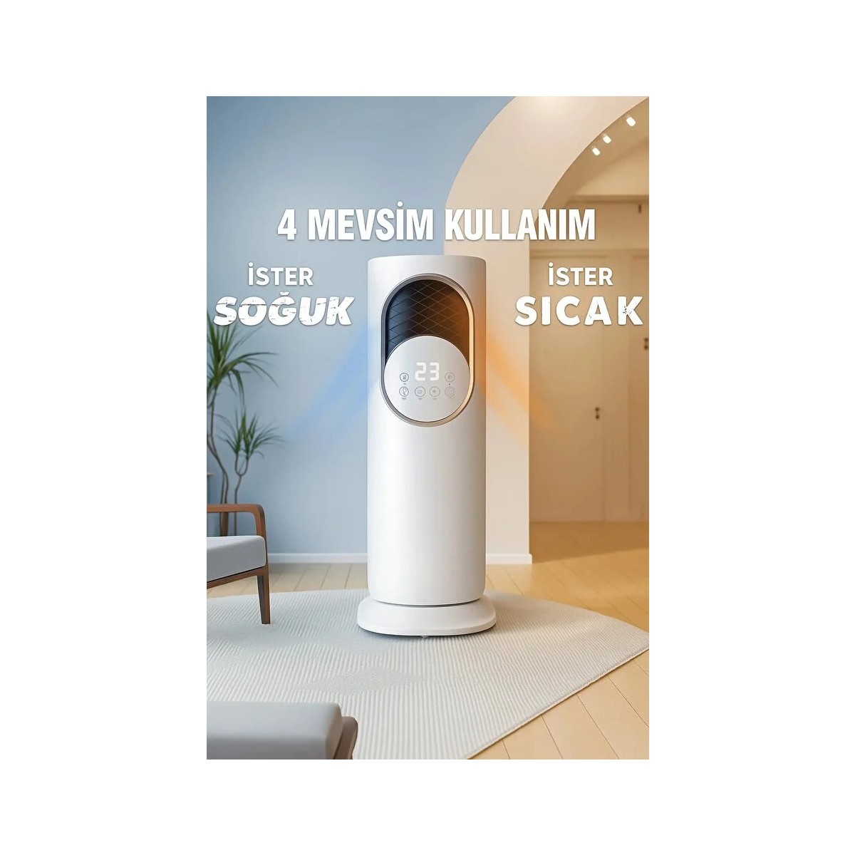 Evinizin her köşesinde konforu yaşayın!🔹 Oda Isısını Otomatik Koruma Teknolojisi 🔹 Yazın Serin, Kışın Sıcak – 4 Mevsim Kullanım 🔹 Buz Kalıbı ile Ekstra Soğutma Desteği 🔹Boyut/Ebat 28x33x88 cm’dir.; 🔹 Kolay Taşınabilir ve Ünitesiz Tasarım İster yaz sıcağında ferahlatıcı bir esinti, ister kışın sıcacık bir ortam arayın, bu cihaz her an yanınızda.; Minimalist ve modern görünümüyle her odaya uyum sağlar.; Uzaktan Kumandalı Taşınabilir Sıcak Üfleme Isıtıcı ile kış aylarında evinizin her köşesini hızla ısıtın.; * 12.000 BTU ısıtma kapasitesi sayesinde güçlü sıcak hava üflemesi sağlar.; * 180° döner hava sirkülasyonu ile sıcaklığı eşit şekilde dağıtır.; * 80 cm yüksekliği, modern tasarımı ve kompakt ölçüleri (25×20 cm) sayesinde yaşam alanlarına kolayca uyum sağlar.; * Uzaktan kumandası ile oturduğunuz yerden konforlu kontrol imkânı sunar.; * Portatif ve montaj gerektirmeyen yapısı sayesinde istediğiniz odaya rahatlıkla taşıyabilirsiniz.; Sıcak portatif taşınabilir ev tipi klima arayanlar için ideal bir çözümdür.; Hem şık tasarımı hem de etkili ısıtma performansı ile kış günlerinde vazgeçilmeziniz olacak.; Kışın hızlı ve homojen ısınmak isteyenler için tasarlanan ARTILED Uzaktan Kumandalı Sıcak Üfleme Isıtıcı, 180° hava sirkülasyonu ile sıcak havayı odaya eşit dağıtır.; Kolon/kule formu sayesinde az yer kaplar, dijital ekranlı modern tasarımıyla her dekora uyum sağlar.; Sıcak portatif taşınabilir ev tipi klima arayanlar için güçlü sıcak üfleme performansını kompakt gövdede birleştirir.; Öne Çıkanlar Güçlü sıcak üfleme: Odanın tamamında hissedilen hızlı ısınma deneyimi.; 180° salınım (hava sirkülasyonu): Sıcak havayı sağa–sola yönlendirerek ölü noktaları azaltır, homojen ısı dağılımı sağlar.; Uzaktan kumanda + dijital ekran: Oturduğunuz yerden aç/kapa, hız/kademe ve yönlendirme kontrolleri; anlık sıcaklık takibi.; Kompakt kule tasarım: 80 cm yükseklik, 25 cm taban genişliği, 20 cm derinlik ile salon, oturma odası, yatak odası, çalışma odası ve ofislerde yer kaplamadan konumlandırılır.; Taşınabilir kullanım: Montaj gerektirmeden farklı odalara kolayca taşınır; mevsim geçişlerinde pratik çözümdür.; Konfor ve şıklık: Minimal, modern çizgiler; nötr renk paletiyle dekorunuza uyum.