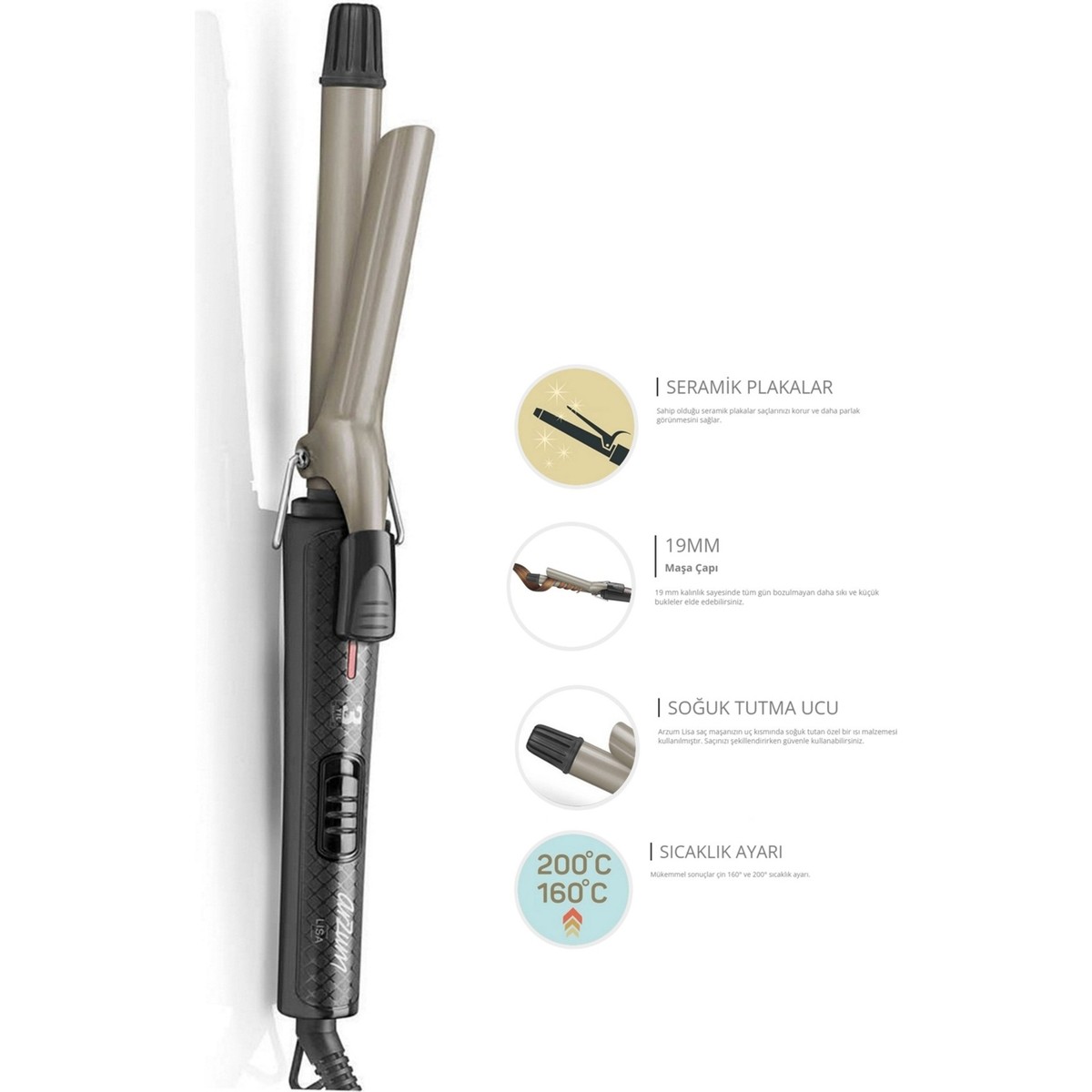 19 mm kalınlığı sayesinde Arzum Lisa saç maşanız ile tüm gün bozulmayan daha sıkı ve küçük bukleler elde edebilirsiniz.