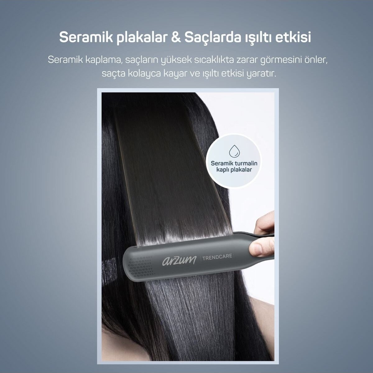 Arzum Trendcare 38 mm Geniş Saç Düzleştirici – Seramik Turmalin Kaplama, 150-230°C Ayarlı, Dalgalı ve Düz Saç Tipleri İçin