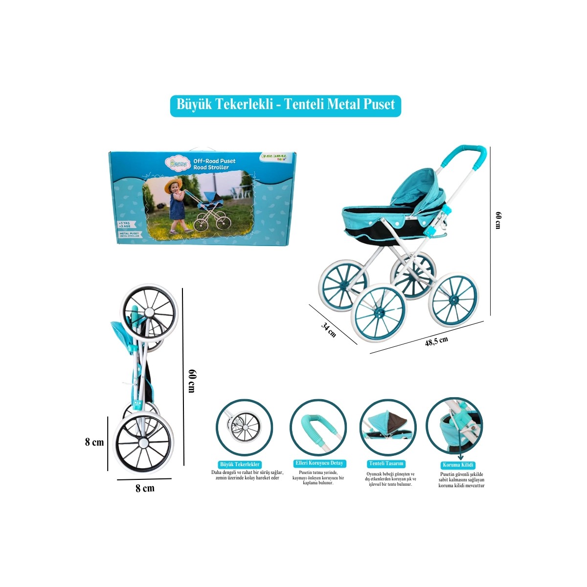 Çocukların oyun dünyasına gerçeklik katacak Büyük Tekerlekli Tenteli Metal Oyuncak Puset ile tanışın! ?