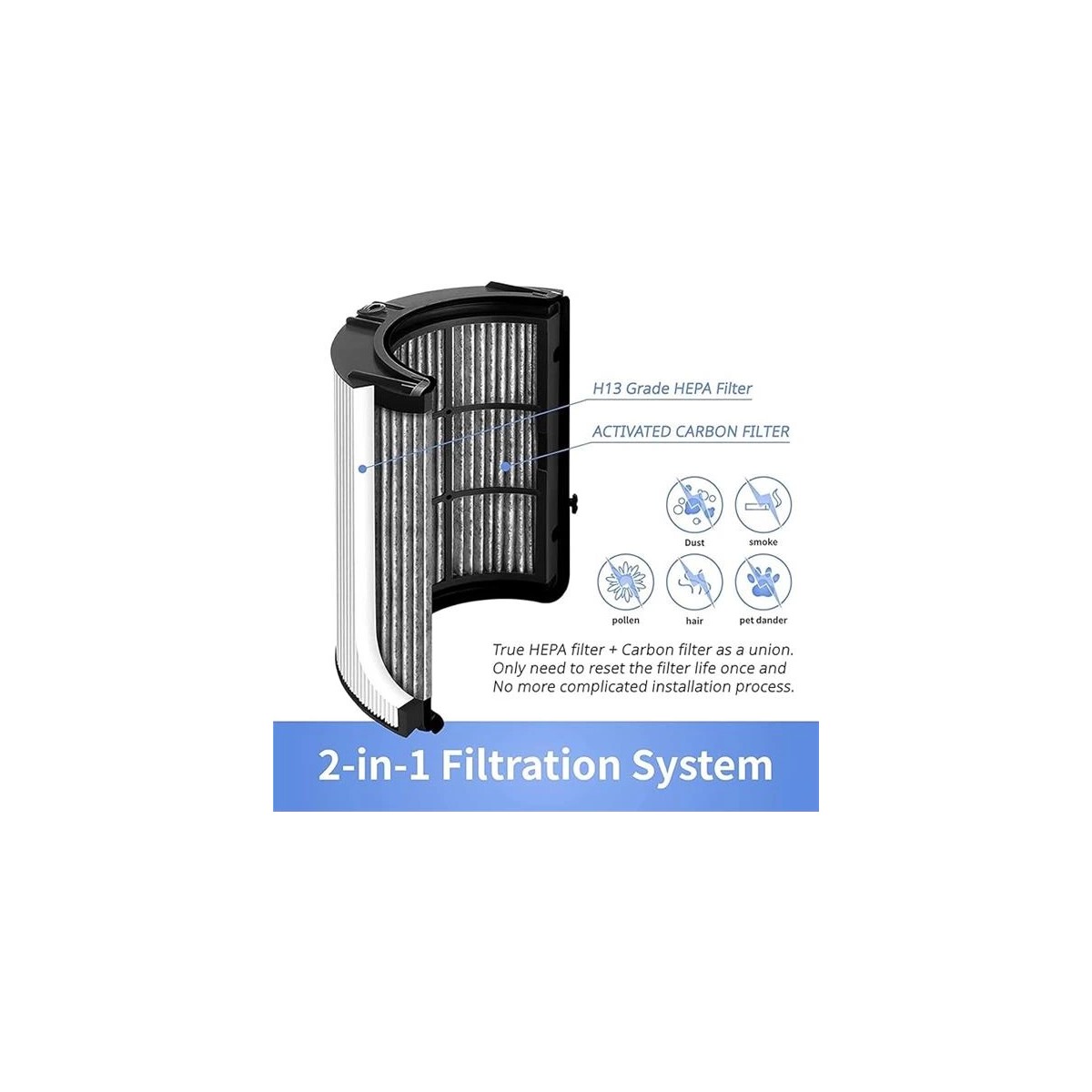 Dyson HP04 TP04 DP04 PH04 HP09 TP09 ve HP07 Modelleri ile 100 Uyumlu filtre Dysonın Pure HotCool Pure Cool ve Pure HumidifyCool cihazlarıyla birebir uyumludur Kolay montaj için özel ölçülerdedir True HEPA Aktif Karbon Katman Gelişmiş Filtreleme PM25 toz polen bakteri gibi zararlıları 9997 oranında yakalayan HEPA katman kötü koku ve VOC emici karbon yapı Temiz Hava Alerji ve Kokuya Karşı Etkili Koruma Sigara dumanı evcil hayvan kokusu yemek buharı gibi kirleticileri etkili şekilde temizler 612 Aylık Dayanıklılık Ekonomik ve Güvenilir Seçim Günlük kullanımda 612 ay arası yüksek performans sağlar Orijinal kalitede üretim ile cihaz ömrünü destekler Steril Ambalaj Kolay Kurulum Hijyenik paketinde kullanıma hazır gelir Takçıkar mekanizması ile filtre değişimi dakikalar içinde yapılabilir