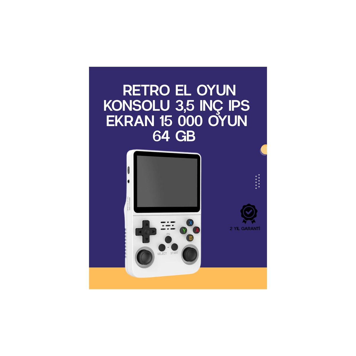 R36S Retro El Konsolu 64 GB – 15.000 Oyun, Geniş Platform Desteği, 3.5” IPS Ekran