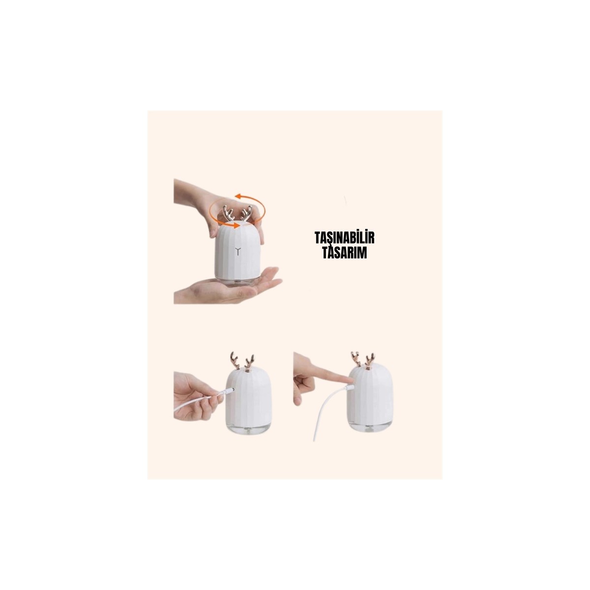 Günümüz modern yaşam alanlarında hava kalitesi giderek önem kazanıyor. Özellikle kuru havalarda ya da klima kullanılan ortamlarda ciltte ve solunum yollarında rahatsızlıklar oluşabilir. Bu taşınabilir mini nemlendirici, yalnızca 80x80x139 mm ölçülerindeki kompakt tasarımı ile ofis masasında, başucunuzda ya da seyahatlerinizde kolayca yer bulur. 220 ml su kapasitesi sayesinde su eklemekle uğraşmadan saatlerce çalışır. Cihazın 2 farklı sprey modu bulunur: sürekli sprey ile 4 saat, aralıklı sprey ile 8 saat çalışma imkânı sağlar. LED ışığı, 7 farklı renk arasında geçiş yaparak ortama hoş bir atmosfer katarken, özellikle gece kullanımında göz yormaz. DC5V USB bağlantısı ile bilgisayar, adaptör, powerbank gibi her yerden kolayca çalıştırılabilir. ABS ve PP malzemeden üretilmiş sağlam gövdesi ile uzun ömürlü bir kullanım sunar. Cihazla birlikte USB kablo ve kullanım kılavuzu da gönderilmektedir.