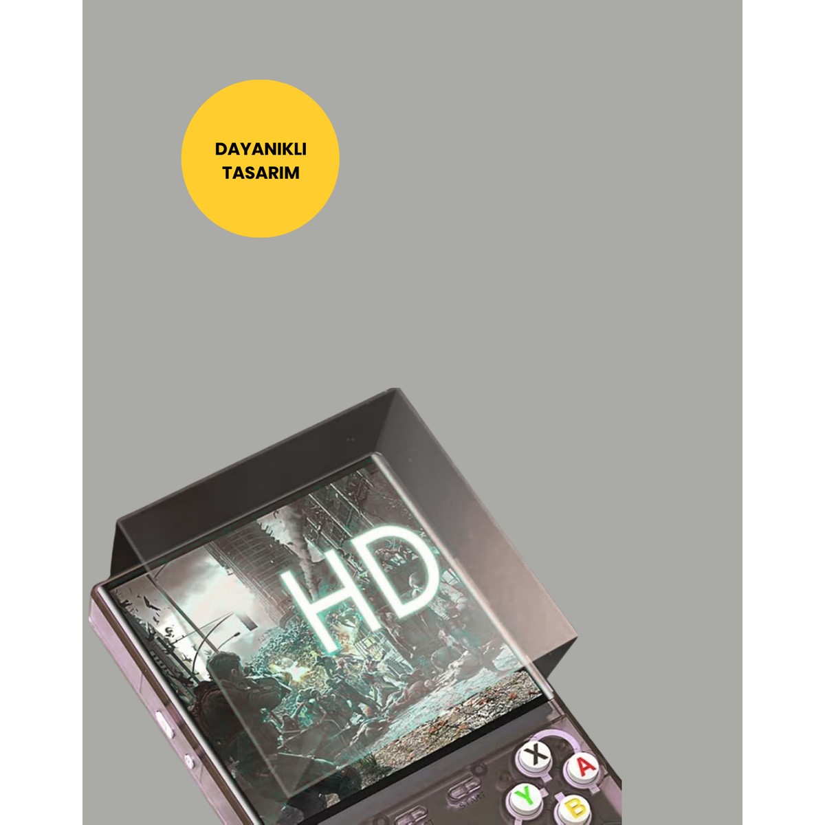 R36 Ultra’nın çift joystick sistemi, hassas ve akıcı kontrol imkânı sunar. Özellikle dövüş, yarış ve macera türündeki oyunlarda maksimum hakimiyet sağlar. Ergonomik buton dizilimi uzun oyun sürelerinde el konforunu korur. 4 inç IPS ekran yüksek çözünürlük sunarken 64GB hafıza 10.000 oyun kapasitesiyle geniş bir arşiv oluşturur. AV kablosu ile televizyona bağlanabilir, multiplayer eğlencelere ev sahipliği yapar. Taşınabilir boyutu sayesinde her yerde oyun keyfini yaşatır.