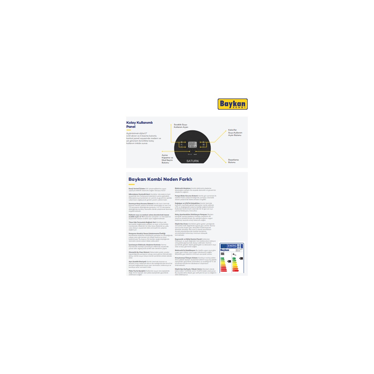 Baykan Saturn Premix 35/39 Kw Tam Yoğuşmalı Kombi