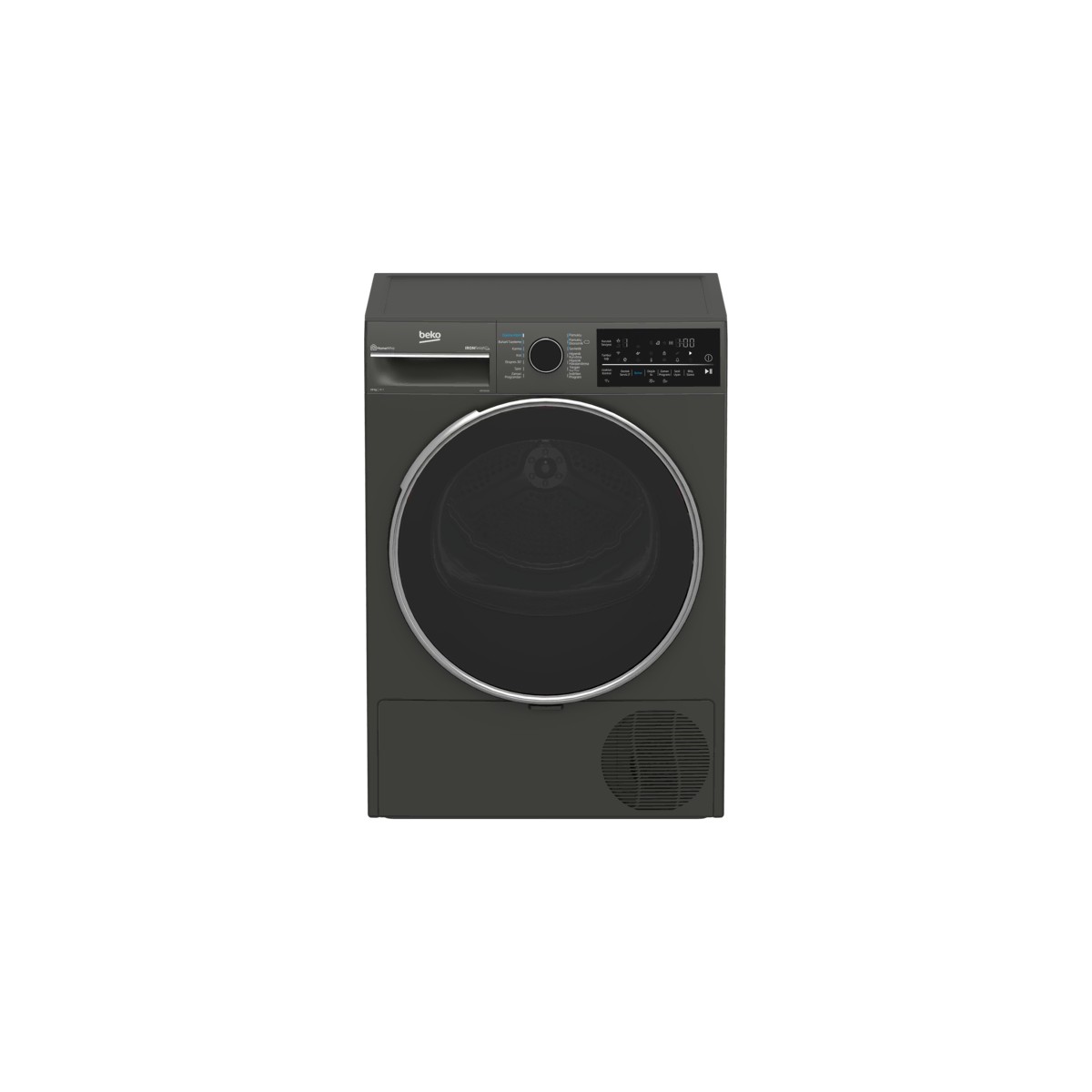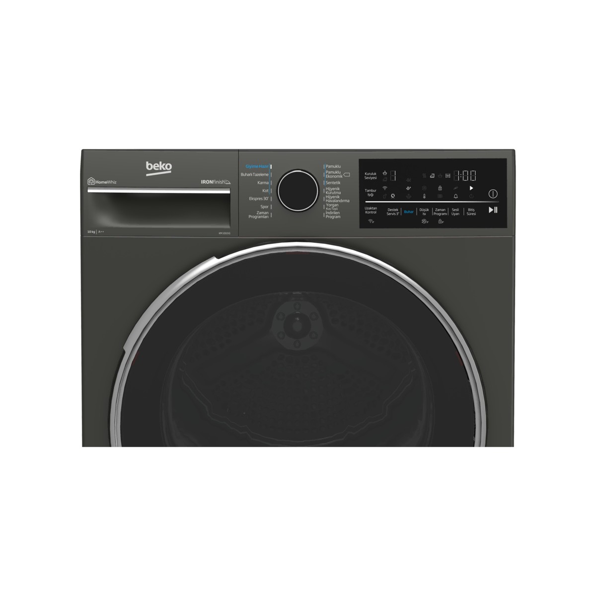 ÖlçülerAğırlık: Paketsiz42 kgBoyut (cm) (GxYxD)84.6 cmBoyut (cm) (GxYxD)59.8 cmDerinlik60.5 cmKonfor ve GüvenlikDokunmatik TuşVarProScent Teknolojisi TazelemeTank PozisyonuÜstKırışık Önleme FonksiyonuVarProgram Takip GöstergesiVarKalan Zaman GöstergesiVarZaman Erteleme Özelliği0-24 SaatTambur AydınlatmaDC LEDDirekt Su TahliyesiVarSu Tankı Dolu UyarısıVarKondenser Temizleme UyarısıVarFıltre Temizleme UyarısıVarProgram Sonu Sesli UyarıVarÇocuk KilidiVarPratik FiltreVarTeknolojik ÖzelliklerIsı pompalı Kurutma TeknolojisiIsı PompalıAkıllı Nem SensörüAkıllı Nem SensörüTambur DeseniAquawaveBağlantıWi-FiIronfinish Teknolojisi VarGenel ÖzelliklerEnerji SınıfıEKurutma Kapasitesi10 kgProgram Sayısı14 ProgramlıTambur Hacmi (L)110Ürün RengiManhattan GreyPerformansYıllık Enerji Tüketimi (kWh)281.9 kWhSes Gücü Seviyesi (dBA)64 dBAProgramlarProgram-1PamuklularProgram-2Pamuklu Ekonomik KurutmaProgram-3SentetikProgram-4Hijyenik KurutmaProgram-5Hijyenik HavalandırmaProgram-6Yorgan/ NevresimProgram-7İndirilen ProgramProgram-8Zaman ProgramlarıProgram-9 Açık Hava/Spor (Goretex)Program-10Ekspres 30′Program-11KotProgram-12KarmaProgram-13Buharlı TazelemeProgram-14Giyime Hazır (Gömlek)