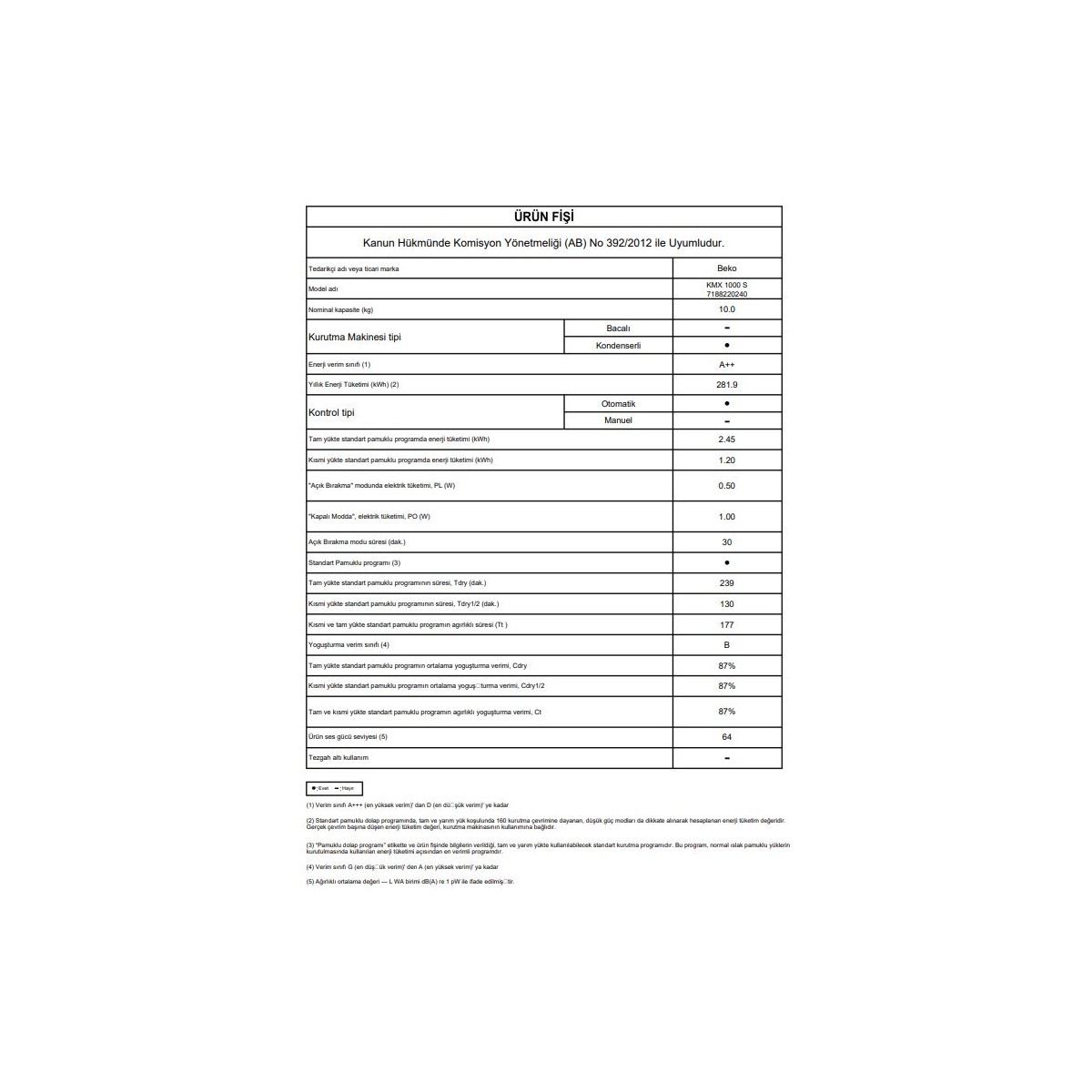 Beko KMX 1000 S 10 Kg Kurutma Makinesi