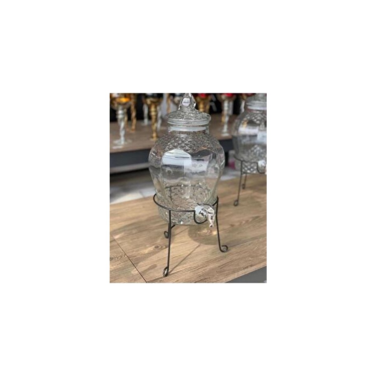 Metal Ayaklı, Musluklu Cam Damacana Limonata Su Sebili Şerbetlik 6 Lt. Ferforje Ayak Metaldir.