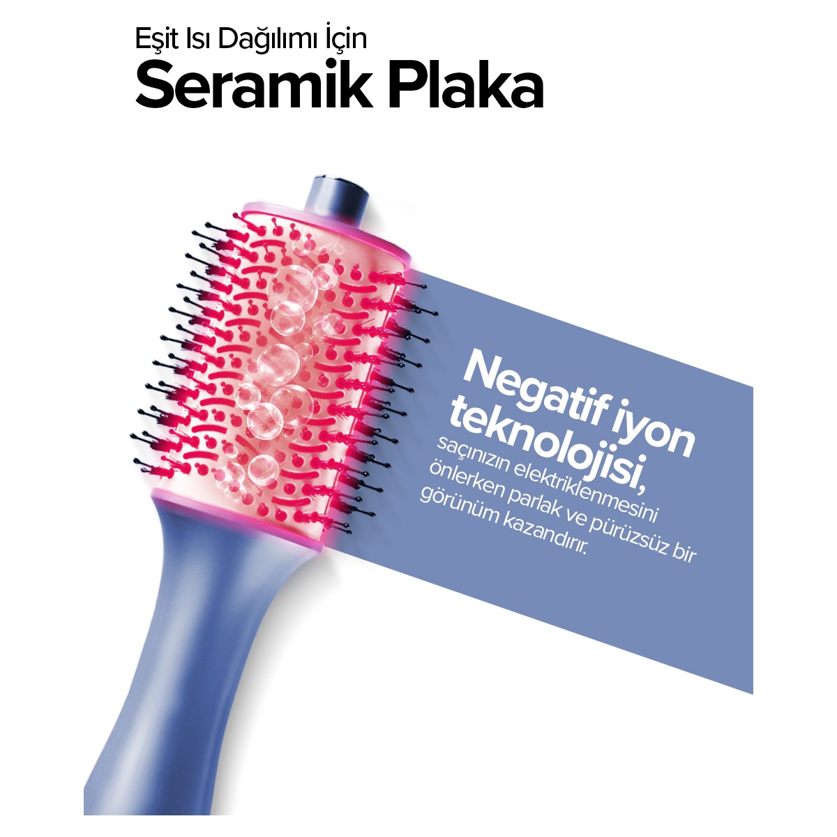 Özel tasarlanmış fırça telleri ile saçlarınızı nazikçe kavrayarak düğümleri açar ve kolayca şekillendirir. Sert ve esnek kılların birleşimi sayesinde saçlarınıza doğal bir hacim kazandırırken, tarama işlemini de pratik hale getirir. Top uçlu kıllar saç derisine nazik bir masaj etkisi yaparak konforlu bir kullanım sağlar.