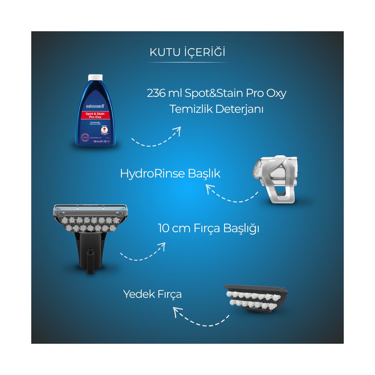 - • Kirli ve temiz su hazneleri ayrıdır ve kolayca çıkarılabilir. • İnatçı kir ve lekeler için özel Bissell deterjanına sahiptir.