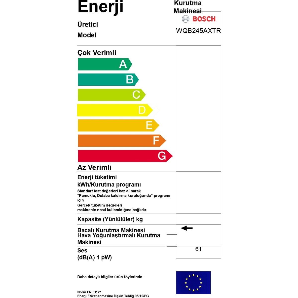 Bosch WQB245AXTR Serie 8 Isı Pompalı Kurutma Makinesi 9 kg Gümüş
