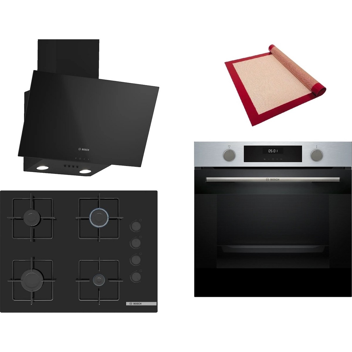 Bosch Siyah 3 lü Ankastre Set 398 ( HUA717BR0T – POP7C6P30O – DWK63PJ60T(61T) ) 67cm Ocak – Buhar Destekli – Pişirme Matı ile