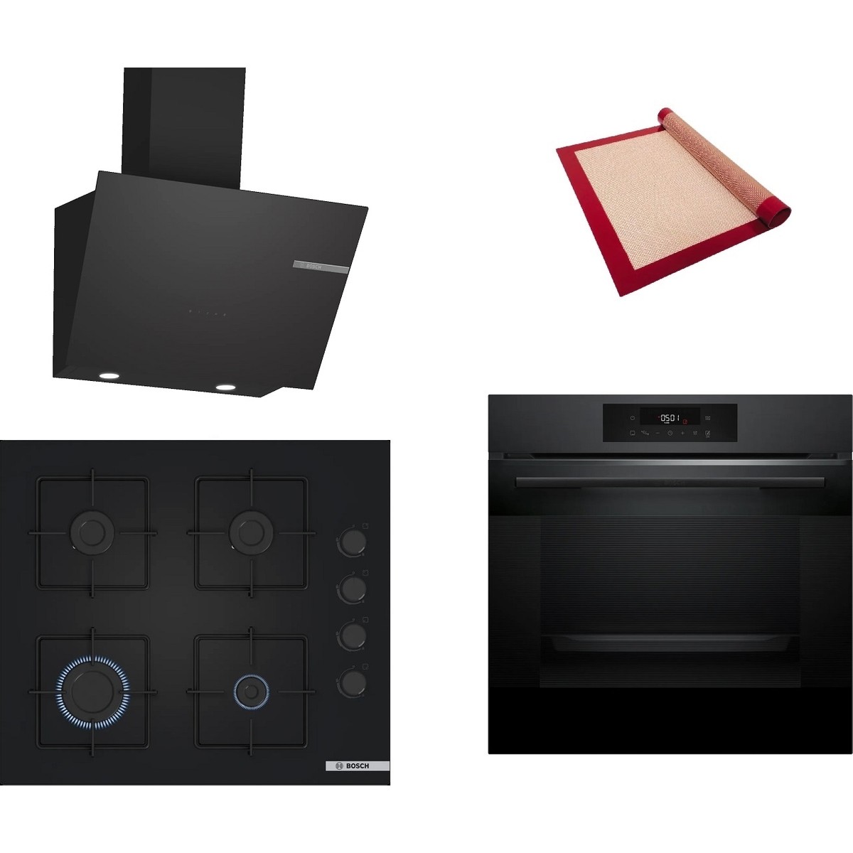 Bosch Siyah 3 Lü Ankastre Set 418 ( HJG852YT0T – POP6C6P30O – DWK66PJ60T ) – 3D Fry Hava ile Kızartma – Pişirme Matı ile