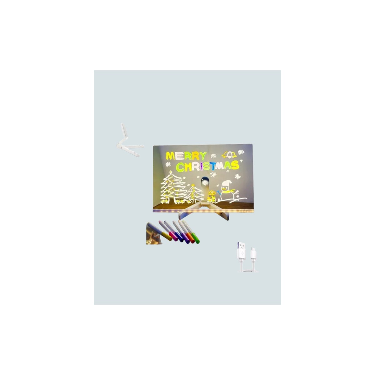 LED Işıklı Şeffaf Yazı Tahtası – Neon Etkili Akrilik Pano, Silinebilir, 7 Renkli Kalemli, 30