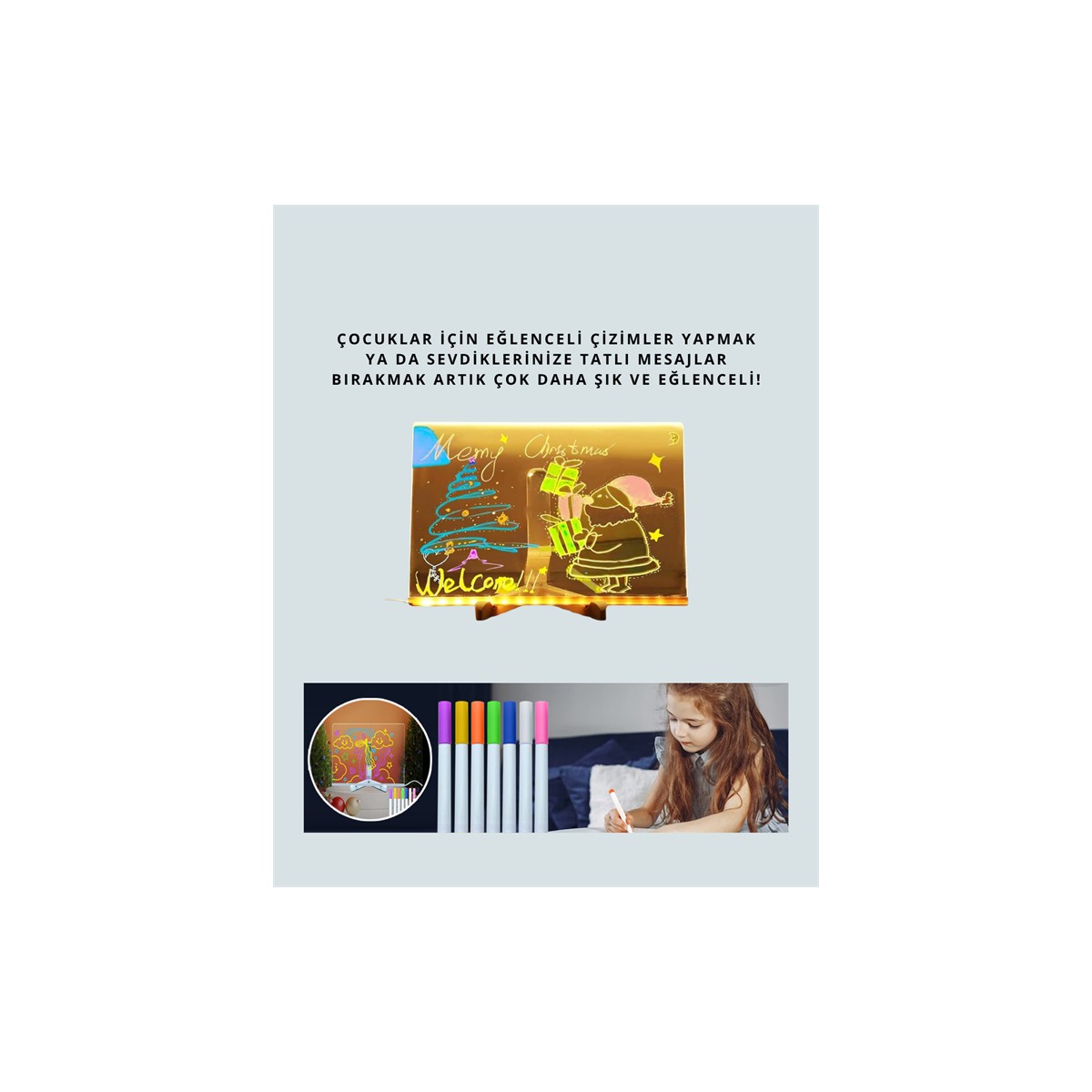 Şık ve Modern LED Pano – Neon Işıklı Silinebilir Akrilik Yazı Tahtası, 7 Renkli Kalem Dahil