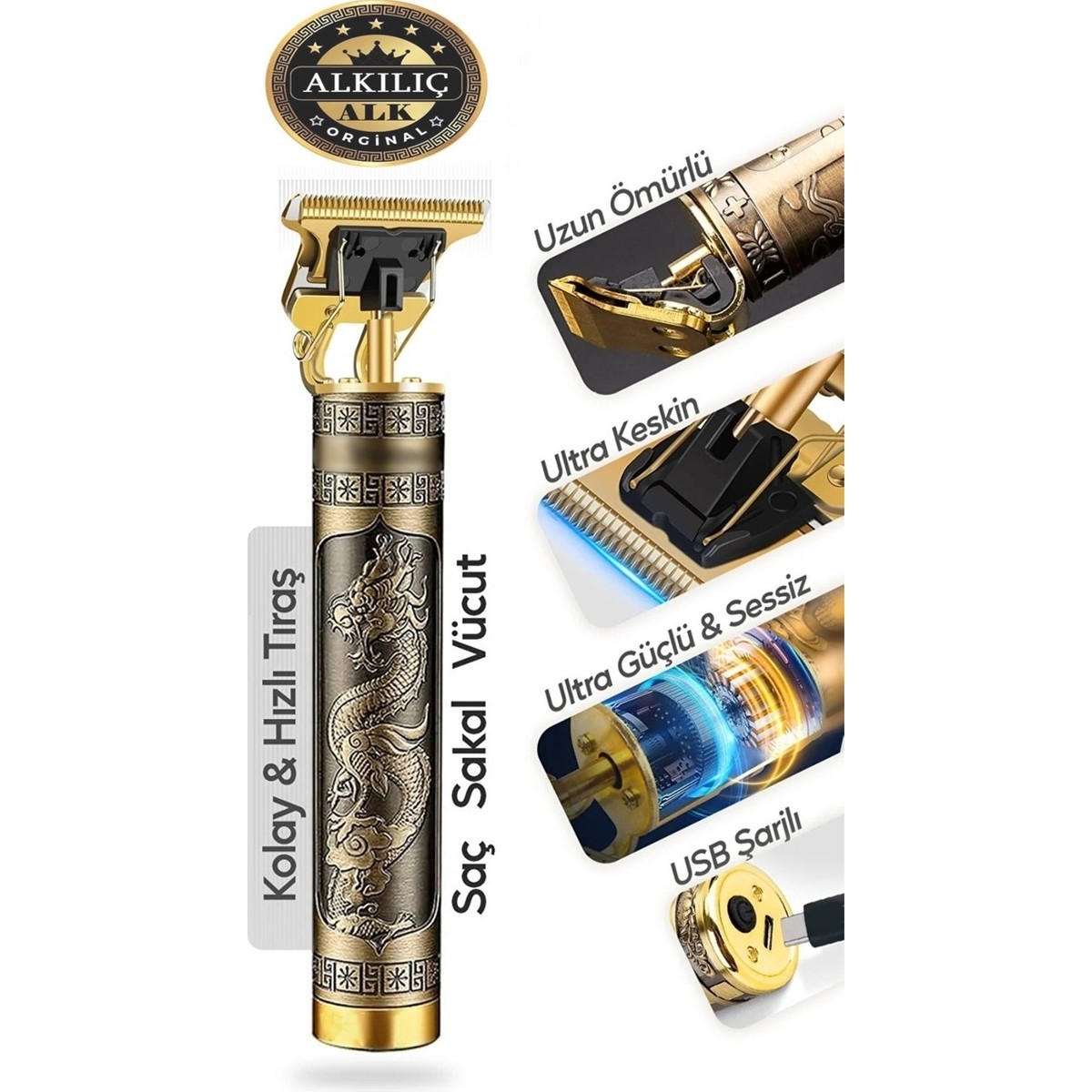 Profesyonel T-bıçak Saç,Sakal, Ense, Çizim ve Lazer Epilasyon Öncesi Tıraş Makinesi Profesyonel şarj edilebilirTıraş makinesi, dayanıklı, kolay ısınmayan, düşük ses seviyesi, yüksek kesmeverimliliği olan titanyum altın kesici ucuna sahiptir. İnsan vücudu mühendisliktasarımına uygun, aerodinamik bir gövde, rahat kullanımı sağlar. Güçlü motor, saçları düzgünbir şekilde kesin, rahat çalışın, saç sıkışması gibi sorunlardan verimli birşekilde kaçının. Düşük frekanslı titreşim,gereksiz gürültüyü etkili bir şekilde azaltır, sessiz ve rahattır. T-outliner ve 0 diş aralığı,bir şaç tasarımı çizin veya hepsini temizleyin, çok değişkenli saç stilinikolayca yapın Ürün Özellikleri Malzeme: Karbon Çelik BaşlıkKesim Boyutu: 0.5 mmBoyut: 150x40x23mmGiriş Voltajı:110-220VÇıkış Voltajı: DC5VAnma Frekansı:50/60HzAnma Gücü: 5WSarj Kablosu: Tyep CKullanım. Paket İçeriği: 1 Adet Saç Ya da Sakal Kesme Makinesi1 Adet Şarj Kablosu (Tyep C)4 Adet Kılavuz Tarak (1.5, 2,3, 4 mm)1 Adet temizleme fırçası