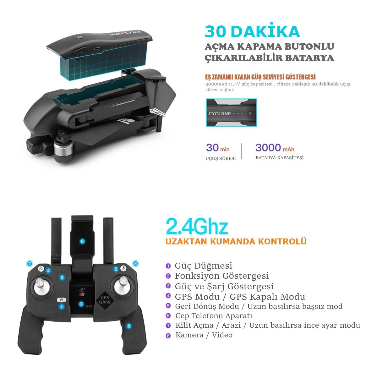 Cyclone 30DK Uçuş 4K 5g Wifi Gps Drone Çift Eksen Gimbal Kamera Fırçasız Motor Katlanabilir Taşıma Çantalı
