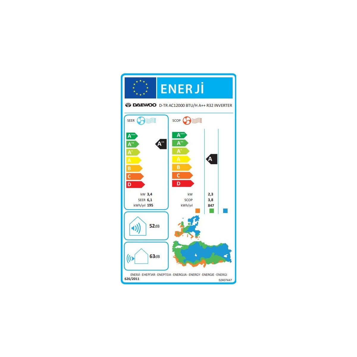 Daewoo D-Tr AC A++ 12000 BTU/h R32 Inverter Duvar Tipi Klima