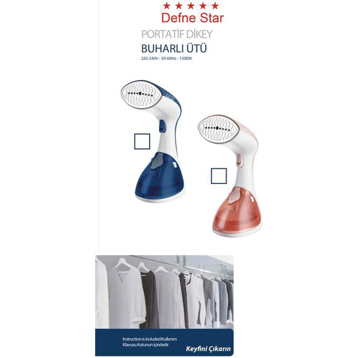 Defne Star Portatif Buharlı Ütü Dikey Ütü – Seyahat Ütüsü Kırışık Giderici