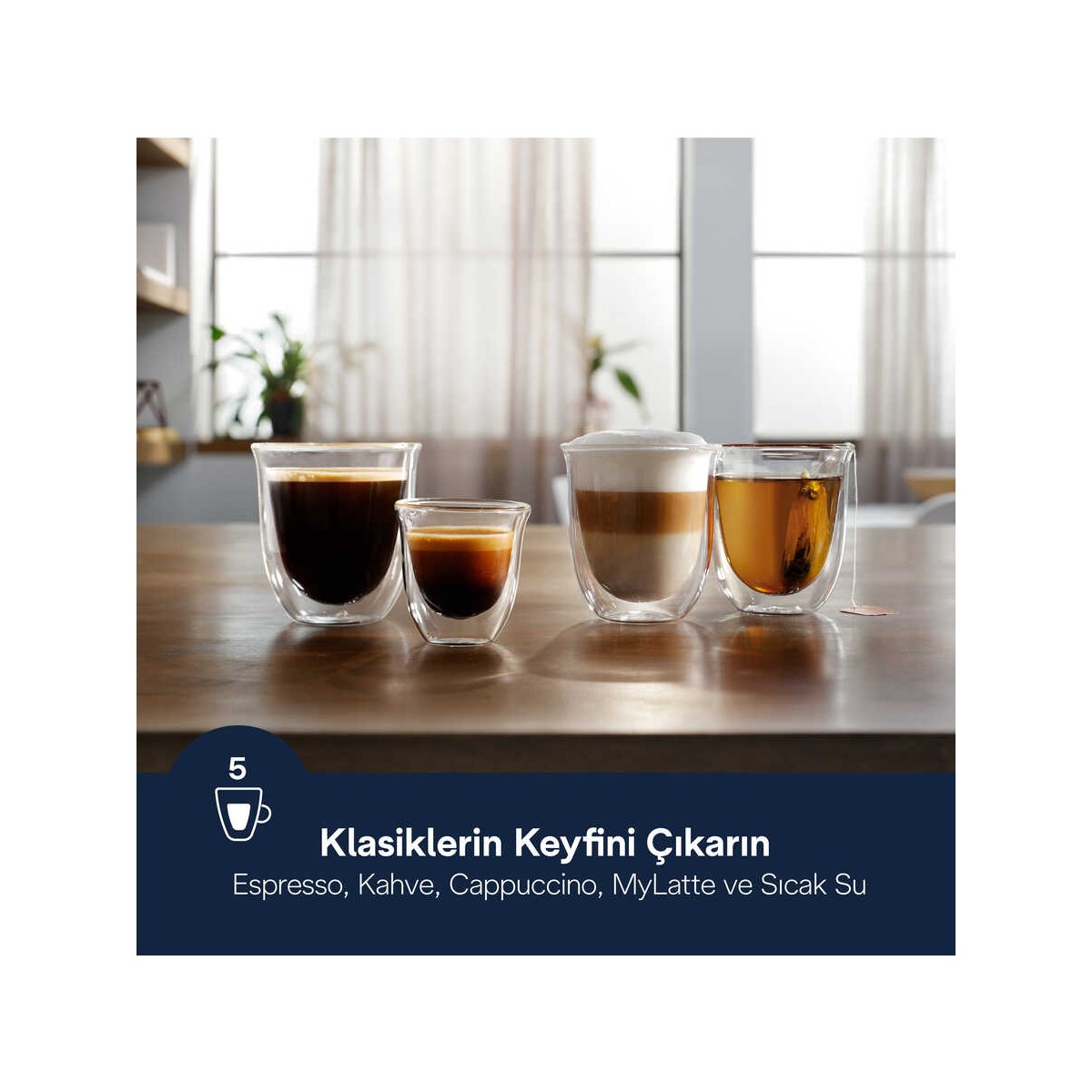 Espresso ve cappuccino dahil 5 tek tuşla tarif.