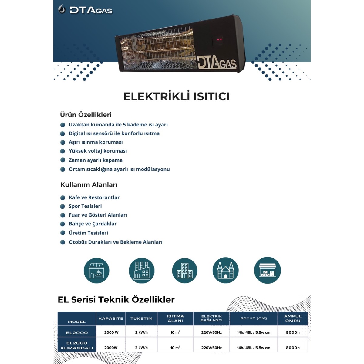 DTAGAS Kumandalı 2000W İnfrared Dış Mekan Isıtıcı, tasarımı ile maksimum konfor ve yüksek kalitede ısınma avantajı sunar.