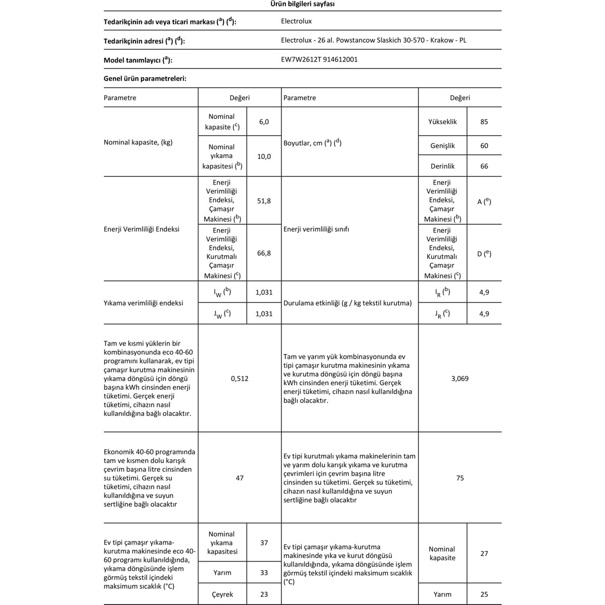 Electrolux EW7W2612T 700 Serisi Steamcare 10/6kg 1600 Devir Buharlı Kurutmalı Çamaşır Makinesi için 4 değerlendirme