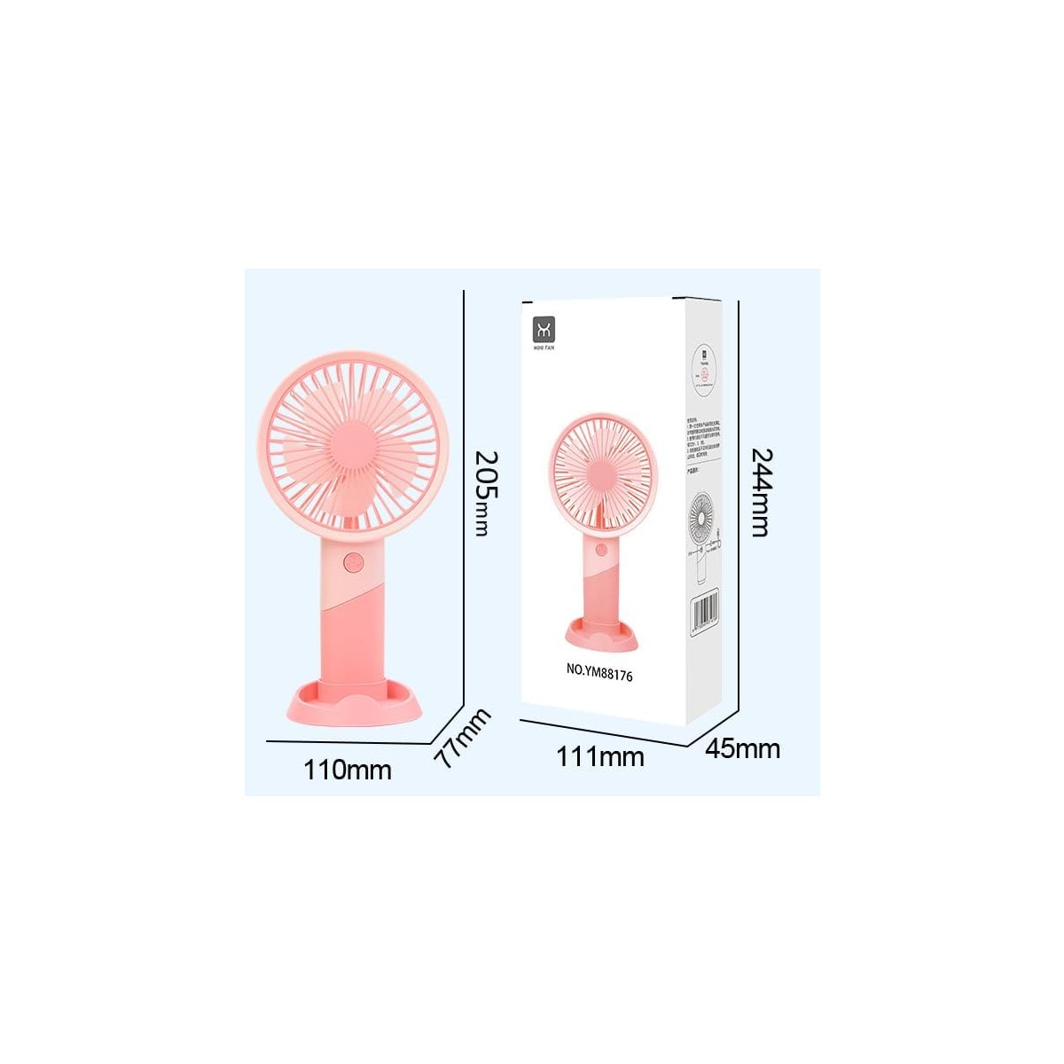 Ürün Bilgisi: Güç kaynağı modu: USB Kategori: masa ve el fanı Paket listesi: Fan*1USB veri kablosu