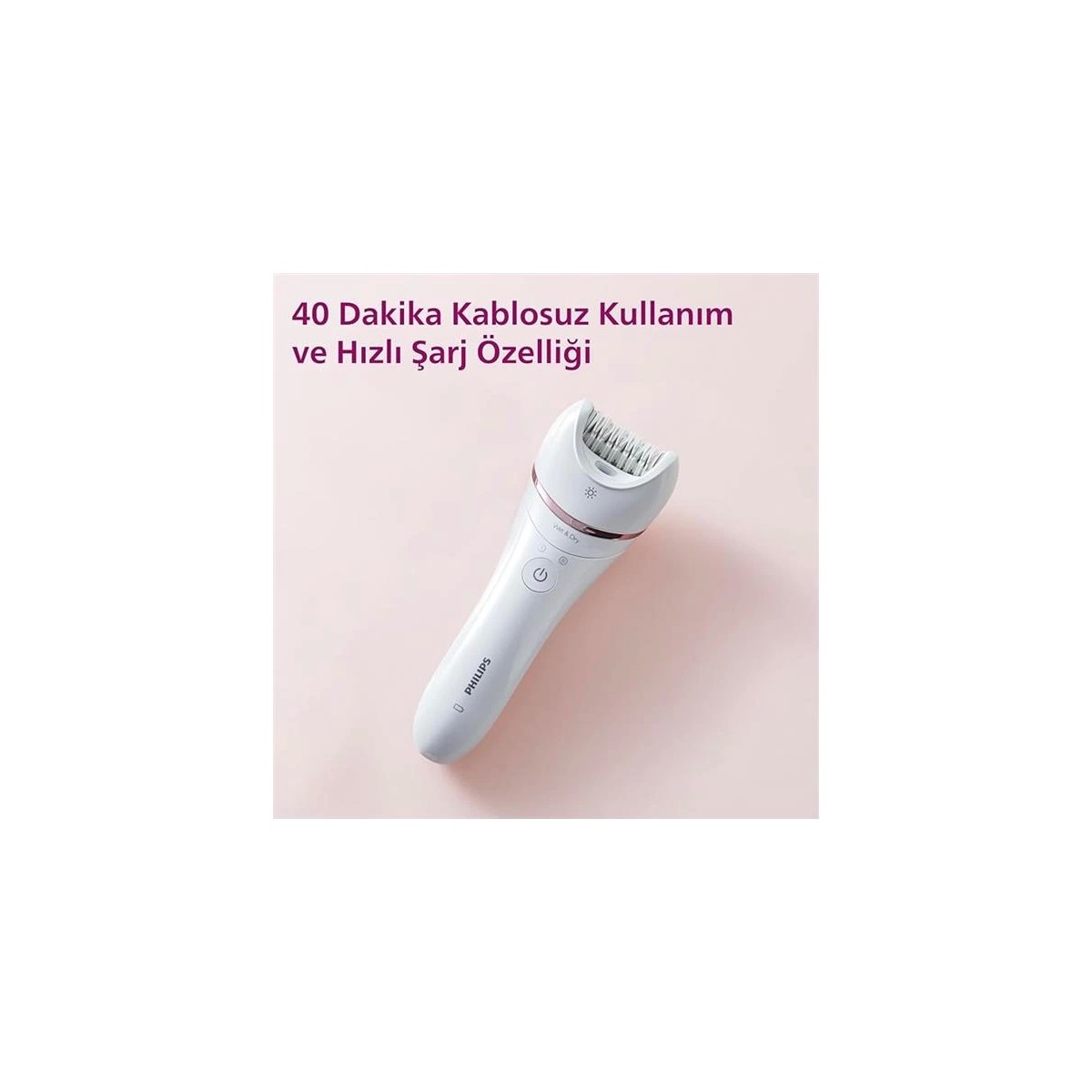 GÜÇLÜ VE HASSAS EPİLASYON 10 dakikada bacakları pürüzsüz hale getiren yüksek performanslı epilasyon sunar ISLAK VE KURU KULLANIM Kablosuz tasarımı sayesinde banyoda veya duşta güvenle kullanılabilir BENZERSİZ LED IŞIK En ince tüylerin bile gözden kaçmasını önleyerek etkili sonuçlar sağlar GENİŞ EPİLATÖR BAŞLIĞI Daha büyük alanlarda hızlı ve verimli uygulama için geniş başlıkla donatılmıştır HASSAS BÖLGE VE OPTİMUM TEMAS BAŞLIKLARI Yüz koltuk altı ve bikini bölgesi için özel başlıklarla maksimum konfor