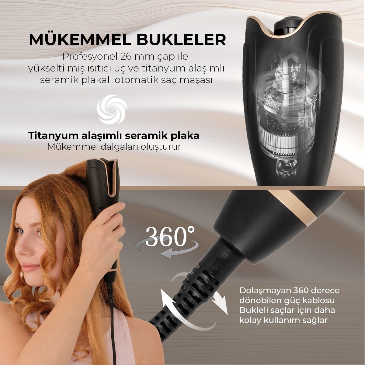 26mm’lik yükseltilmiş ısıtıcı uç ve U şeklindeki haznesi sayesinde her seferinde daha fazla saçı zahmetsizce kıvırabilirsiniz. Her yaştan kullanıcıya uygundur.