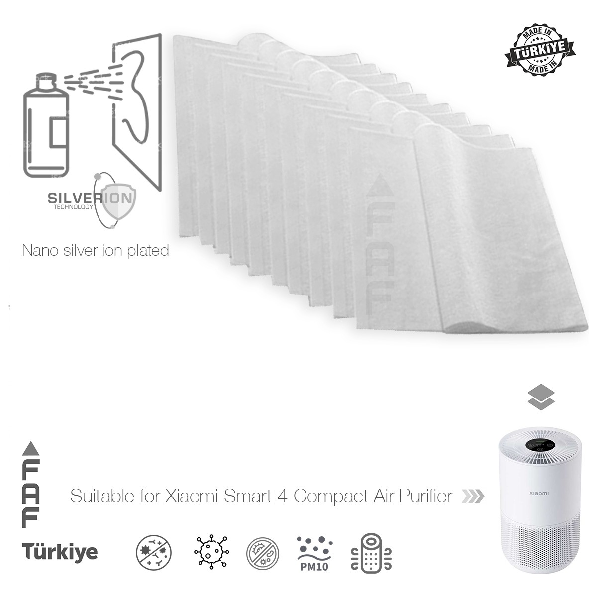 Xiaomi smart Air purifier 4 Compact için ölçü olarak tam uyumlu bir ürün. On adet geldi. Ayrıca yanında gönderdiğiniz küçük hediye için teşekkür ederim.