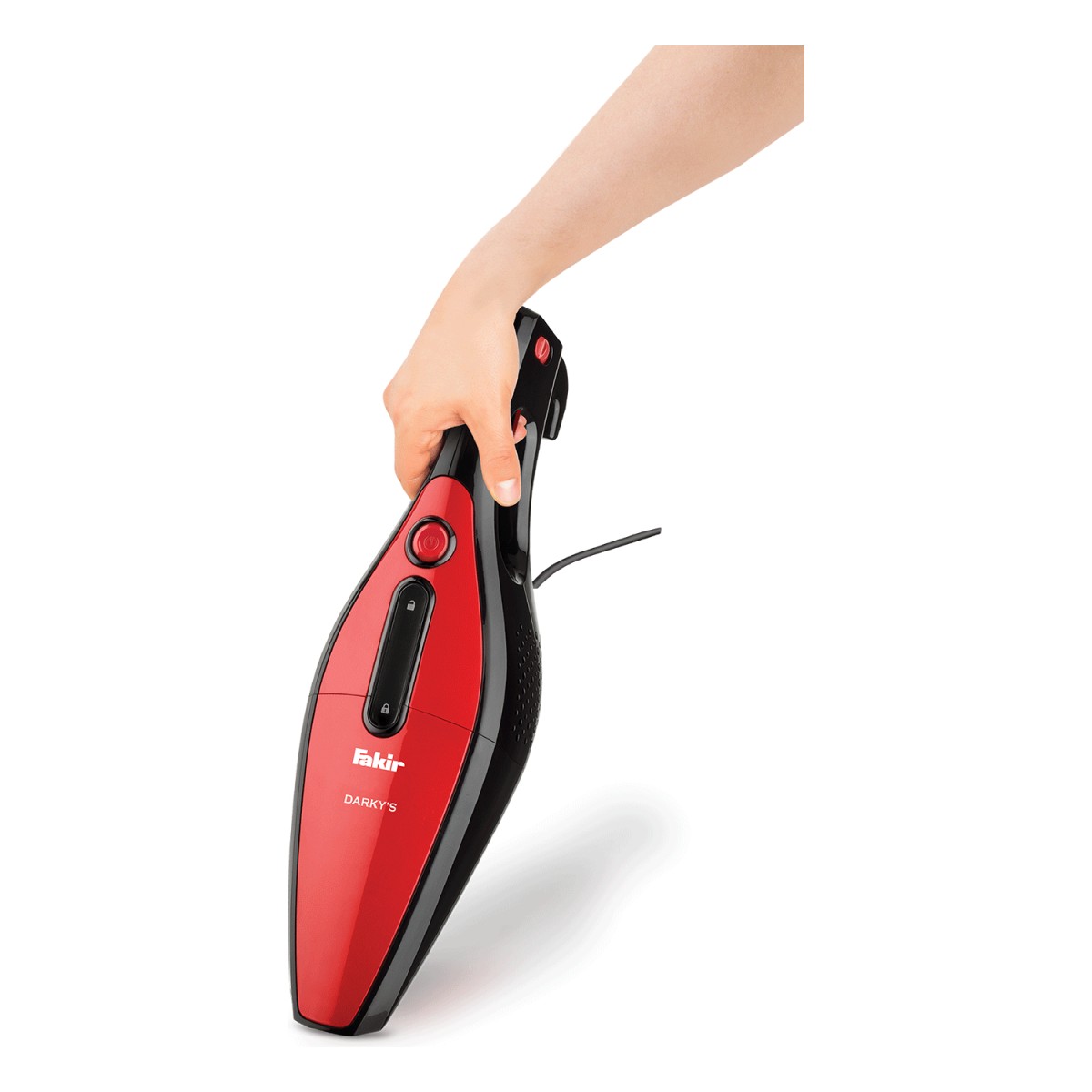 Fakir Darky Öko dik torbasız elektrik süpürgesi, güçlü ve pratik özellikleri ile beğeni topluyor. Toz torbası gerektirmeyen tasarım, dik görünümü ve rahat kullanımı ile kompakt özellikler vadediyor. Az yer kaplayan, mükemmel temizlik sağlayan cihaz, kuru kullanım için uygun. Darky, hem geniş alanlarda süpürge olarak hem de dar alanlar için el süpürgesi olarak kullanılabiliyor. Tutma sapı ve üçgen yer aparatı kolaylıkla çıkabiliyor. Motor gücü ile büyük elektrikli süpürgelere meydan okuyan Darky Öko, 800 Watt motor ile çalışıyor. Yüksek emiş gücü temizliğe hız katarken, üçgen aparat en zor alanları bile köşe bucak süpürmenize imkan tanıyor. Standart süpürge tasarımlarından çok daha hafif olması nedeniyle kullanıcıları yormayan dik süpürge, 2,8 kilogram ağırlığında tartılıyor.
