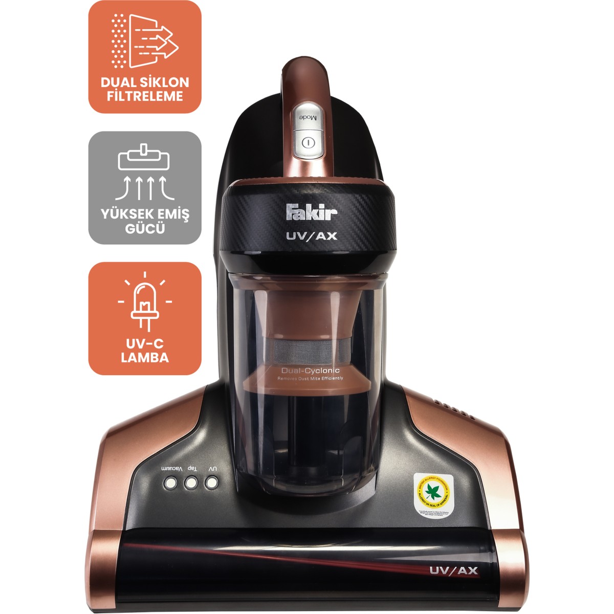 Ayrı turbo motorlu kauçuk ve PVC kıllı turbo fırçası sayesinde yatak ve koltukların derinliklerindeki tozu, ev akarları ve mikroorganizmaları etkili şekilde vakumlar