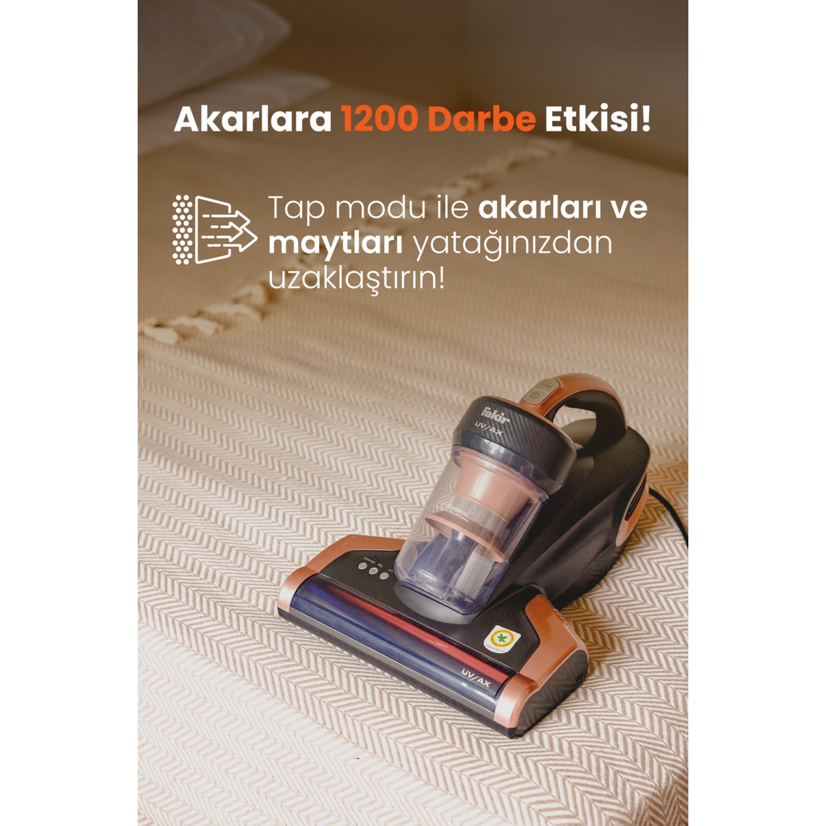 Profesyonel UV-C/ Ultraviyole ışık sayesinde ev akarı ve tozları temizleyerek alerji oluşumunu aza indirir