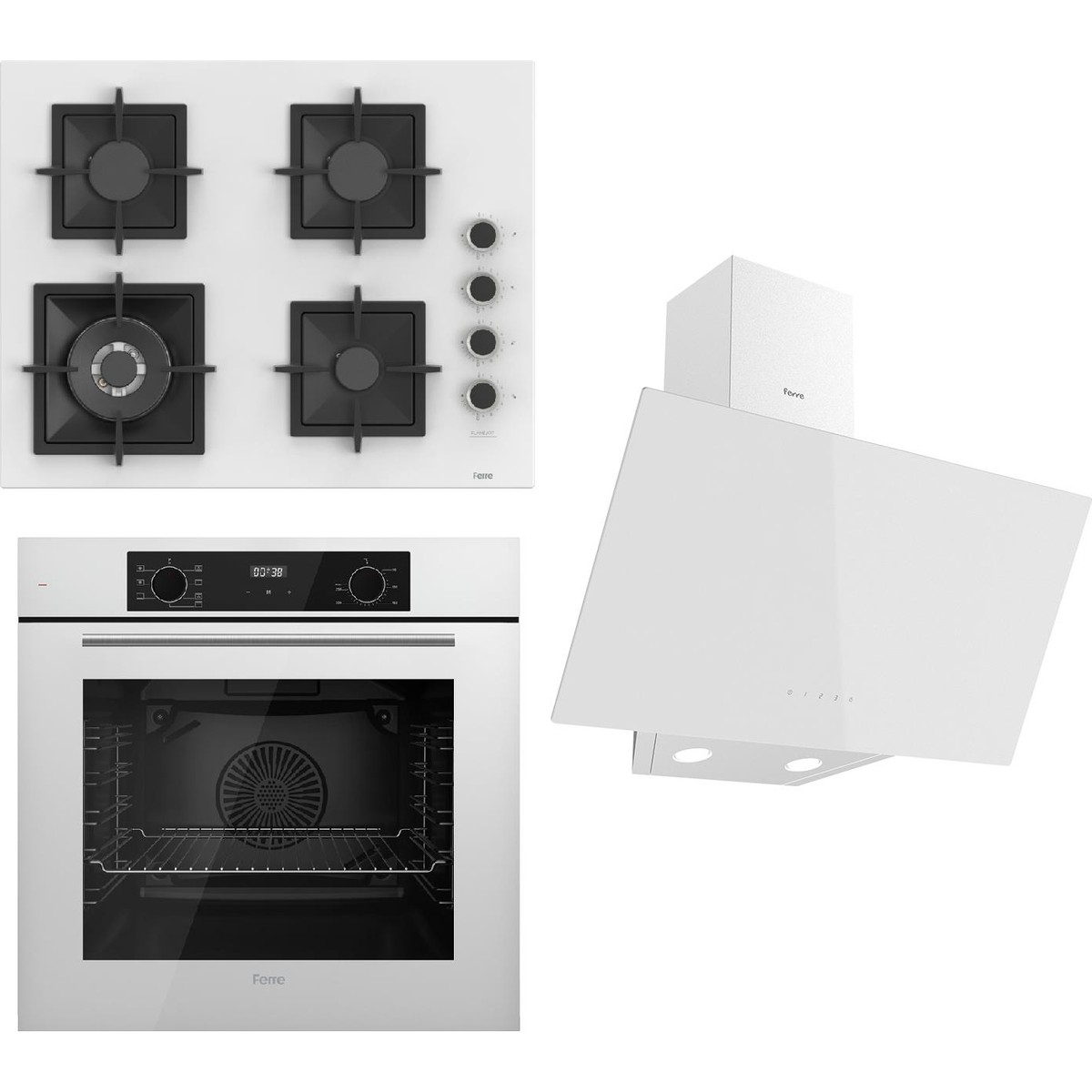 Ferre Flowart Serisi Beyaz Set (SC406-WFA + QBL63CB +D078) – Döküm Izgara / 65 cm Ocak