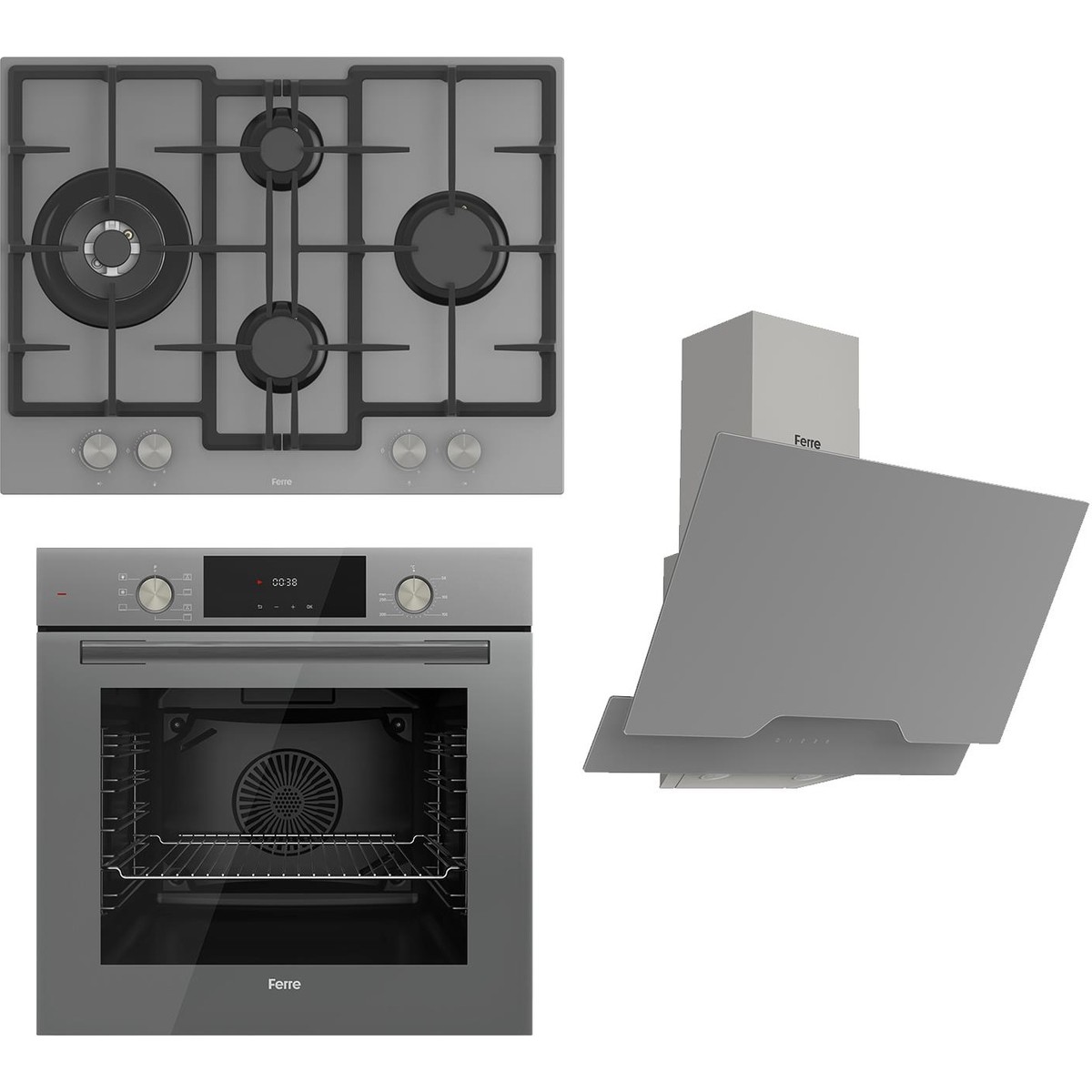 Ferre ED078 Döküm Izgaralı 67 cm lik Ankastre Gri Cam Ocak